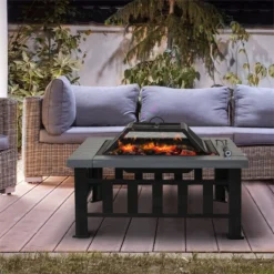Outsunny Brasero Exterior De Metal Hoguera Multifuncional Tipo Calentador 3 En 1 Como Pozo De Fuego/BBQ/Cubo De Hielo Para Terraza Patio Y Jardín 86x86x54 Cm