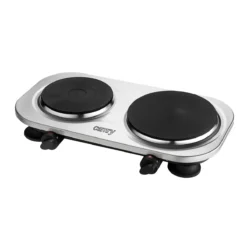 Camry CR6511 Hornillo Eléctrico Doble, Zona Cocinado 18,5 – 15.5 Cm, 2 Termostatos Regulación Continua, 1500, Plata