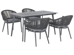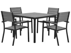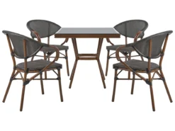 Conjunto De Jardín 4 Plazas De Metal Negro/madera Clara CANETTO