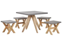 Conjunto De Jardín De Cemento Reforzado Mesa 90 X 90 Cm 4 Taburetes Gris/madera Clara OLBIA