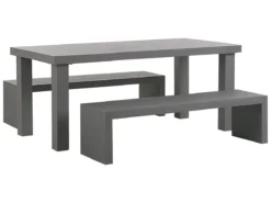 Conjunto De Jardín De Cemento Reforzado Mesa Y 2 Bancos Gris TARANTO