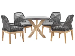Conjunto De Jardín De Cemento Reforzado Mesa ⌀ 90 Cm 4 Taburetes Gris/madera Clara OLBIA/TARANTO