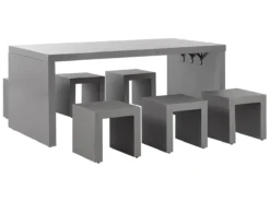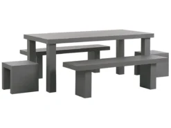 Conjunto De Jardín De Cemento Reforzado Mesa 2 Bancos Y 2 Taburetes Gris TARANTO