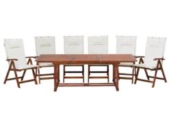 Conjunto De Jardín De Madera De Acacia Con 6 Sillas Y Cojines Crema TOSCANA