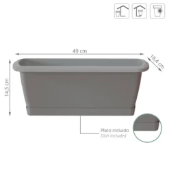 Prosperplast Maceta Urbi Case Beton Effect , Con Depósito, Dimensiones (Mm) 580X180X498, Color Crema