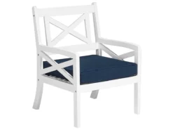 Silla De Jardín De Madera Blanca Con Cojín Azul Oscuro BALTIC