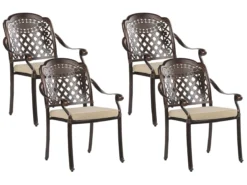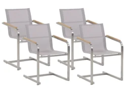 Conjunto De 4 Sillas De Jardín De Poliéster/acero Inoxidable Beige/plateado COSOLETO