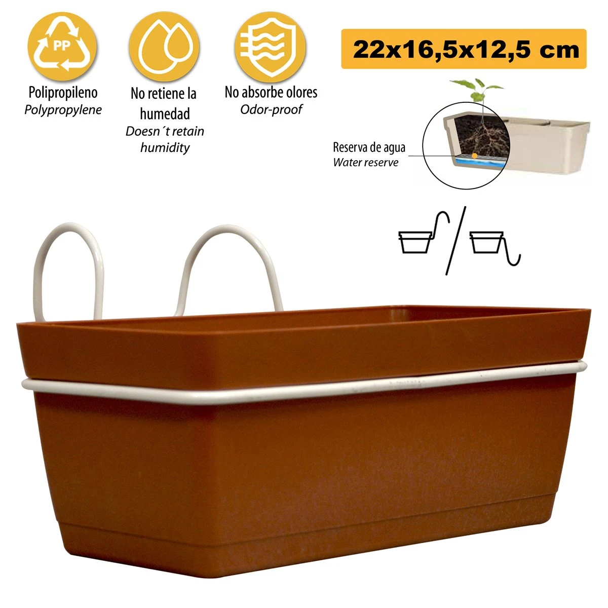La Nueva Línea De Macetas Pequeñas Pop-Up Se Puede Colgar Casi En Cualquier Lugar. _x000D_La Colección Consta De Coloridas Macetas De Polipropileno Y Un Soporte De Hierro Pintado Que Permite Que Las Cuelgues En La Barandilla, En Una Red E Incluso En Un Poste Con El Uso De Una Simple Banda De Plástico._x000D_3 Jardineras L 22 Cm Con Ganchos, De Polipropileno_x000D_Terracota