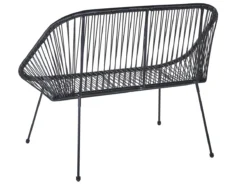 Banco de exterior de ratán sintético. Añade un toque clásico a la decoración con este banco de jardín. Está fabricado a partir de ratán sintético de diseño universal. Las patas de metal garantizan la máxima estabilidad. Combina bien en cualquier interior o exterior de estilo retro o contemporáneo. Detalles: Tipo de Producto: Banco Estilo: Moderno Color: Negro Tipo de material: Ratán sintético Material principal: Ratán sintético Material adicional: Acero Acabado: Revestimiento en polvo Dimensiones: Profundidad: 78 cm Altura del asiento: 42 cm Ancho: 114 cm Altura: 88 cm Superficie del asiento: 90×41 cm Peso: 7 kg Capacidad de peso: 300 kg La oferta incluye: 1 x Banco Ventajas: Asiento extremadamente cómodo, Asiento bajo y profundo, Ideal para uso en interiores y exteriores, Patas con tapas antideslizantes de seguridad, Ligero y sólido a la vez, muy fácil de mover Información de montaje: Requiere montaje de las patas. 5-15 min. Información adicional: Abre el embalaje con cuidado, especialmente cuando utilizas herramientas afiladas o puntiagudas, ya que pueden dañar el producto, Para una mayor estabilidad y seguridad de uso, se recomienda verificar 2 semanas después de la instalación que el montaje del producto ha sido realizado de forma correcta. Revisa, al menos una vez cada 3 meses, que los tornillos estén bien apretados. Texto de resistencia: Los muebles resistentes a los rayos UV muestran una mayor resistencia a la decoloración. Sin embargo, recomendamos que el producto se guarde en el interior cuando no esté en uso. Esto asegurará la máxima durabilidad de los muebles. Resistencia: Rayos UV Consejos de mantenimiento: Ratán sintético: 1.Se recomienda utilizar una funda protectora para la temporada de invierno o, si es posible, para mantener los muebles secos y frescos en el interior 2.Limpiar con detergentes a base de jabón. No utilizar limpiadores químicos corrosivos 3.Los utensilios o accesorios de vidrio pueden sobrecalentar la superficie 4.Para alargar la vida útil del mueble, protéjalo de la exposición directa al sol. Acero: 1.Quite las tapas protectoras con regularidad para que salga todo el líquido, déjelas secar y utilice un spray anticorrosión si es necesario 2.Limpiar con detergentes suaves 3.Los muebles de acero y sus elementos no deben exponerse al agua. De lo contrario, existe la posibilidad de que el agua oxidada salga de las tuberías del marco 4.Cuando no estén en uso, los muebles deben guardarse en el interior o bajo una cubierta protectora 5.Para aumentar la durabilidad del artículo, manténgalo seco y recuerde la limpieza regular 6.Cualquier daño a la capa de pintura exterior debe protegerse de la humedad 7.Para garantizar la protección contra la corrosión, evite los limpiadores alcalinos o ácidos. Después de limpiar, secar bien.