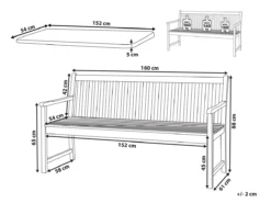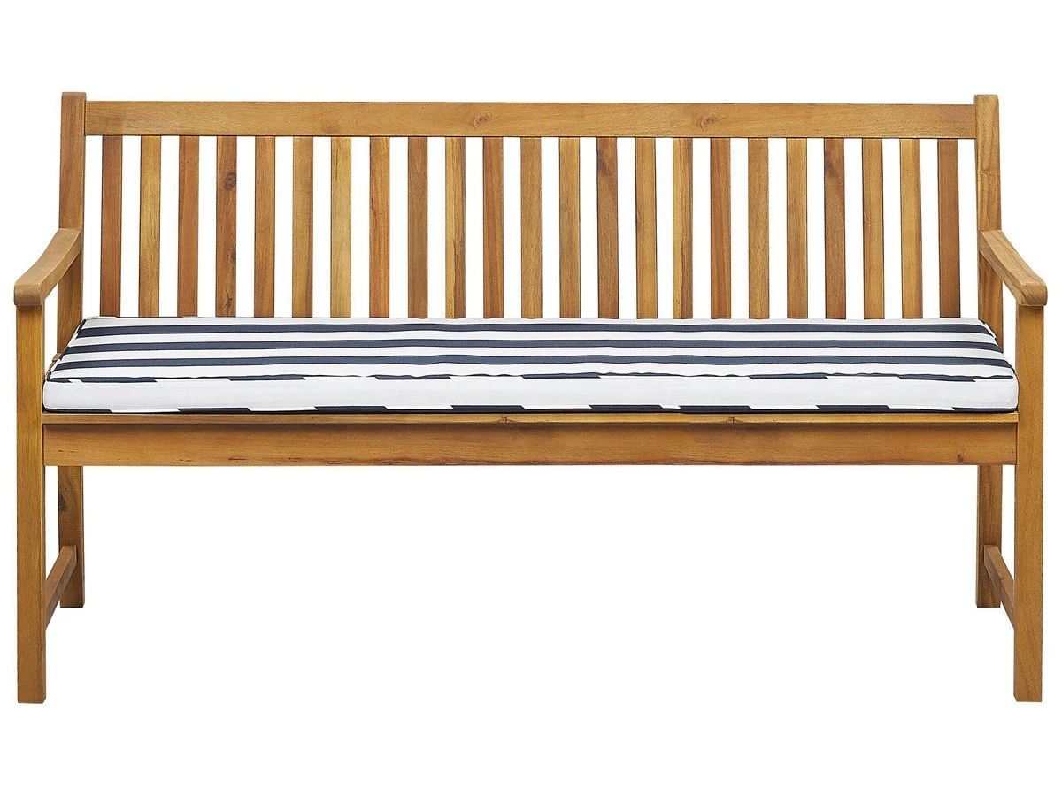 Clásico banco de jardín con cojín. Añade modernidad a tu zona exterior con este banco de estilo rústico. Está fabricado a partir de madera de acacia duradera y de alta calidad. Tiene una capacidad para 3 personas. El cojín de asiento ofrece la máxima comodidad. Detalles: Tipo de Producto: Banco Estilo: Rústico Color: Madera clara Tonalidad: Gris pardo Tipo de material: Madera maciza Material principal: Madera de acacia con certificado FSC® Material adicional: Poliéster Composición del Material: 100% Poliéster Densidad de espuma del asiento: 18 kg/m3 Dimensiones: Altura del apoyabrazos: 20 cm Profundidad: 61 cm Espesor del asiento: 5 cm Altura del asiento: 45 cm Ancho: 160 cm Altura: 88 cm Superficie del asiento: 152×54 cm Peso: 20 kg Capacidad de peso: 480 kg La oferta incluye: 1 x Banco, 1 x Cojín del asiento Ventajas: Las tiras ofrecen una fijación segura, Increíblemente suave, Ancha superficie del asiento, Perfecto para todo tipo de exterior, No requiere mantenimiento regular, Materiales de la más alta calidad, Ideal para uso en interiores y exteriores, Resistencia UV 5 (ISO 105-B02, Fundas de cojines impermeables y extraíbles Información de montaje: Requiere montaje completo. 20-40 min. Información adicional: El producto viene con un libro de cuidados detallado para ayudarte a mantener tus muebles en las mejores condiciones durante muchos años. Consulta estos consejos para garantizar el mantenimiento adecuado de tus muebles nuevos – encontrarás las instrucciones de mantenimiento junto con el manual de montaje. Texto de resistencia: Gracias a su resistencia al agua, puedes utilizar el producto al aire libre y dejarlo a la intemperie durante lluvias ligeras. Si no es posible guardarlo en un lugar cerrado y protegido, recomendamos utilizar una funda protectora. La exposición prolongada a la humedad puede provocar daños en el mueble. Resistencia: Agua ligera / humedad Consejos de mantenimiento: Madera de acacia: 1.Los muebles con acabado de aceite deben volverse a engrasar antes de ponerlos en uso y al menos una vez al año, especialmente en el clima húmedo 2.Limpiar con un limpiador suave y un paño suave en la dirección de la veta. Secar con un paño inmediatamente después de limpiar 3.Durante el invierno o en condiciones climáticas adversas, utilice una funda protectora o guarde los muebles en el interior. Poliéster: 1.Lavar a mano o seleccionar un ciclo de lavado de lana (30 ° C, a menos que el fabricante especifique lo contrario. Lavar del revés con la cremallera cerrada 2.Cuando no esté en uso, manténgalo en un lugar limpio y seco para protegerlo de las condiciones atmosféricas 3.No secar en secadora y no planchar.