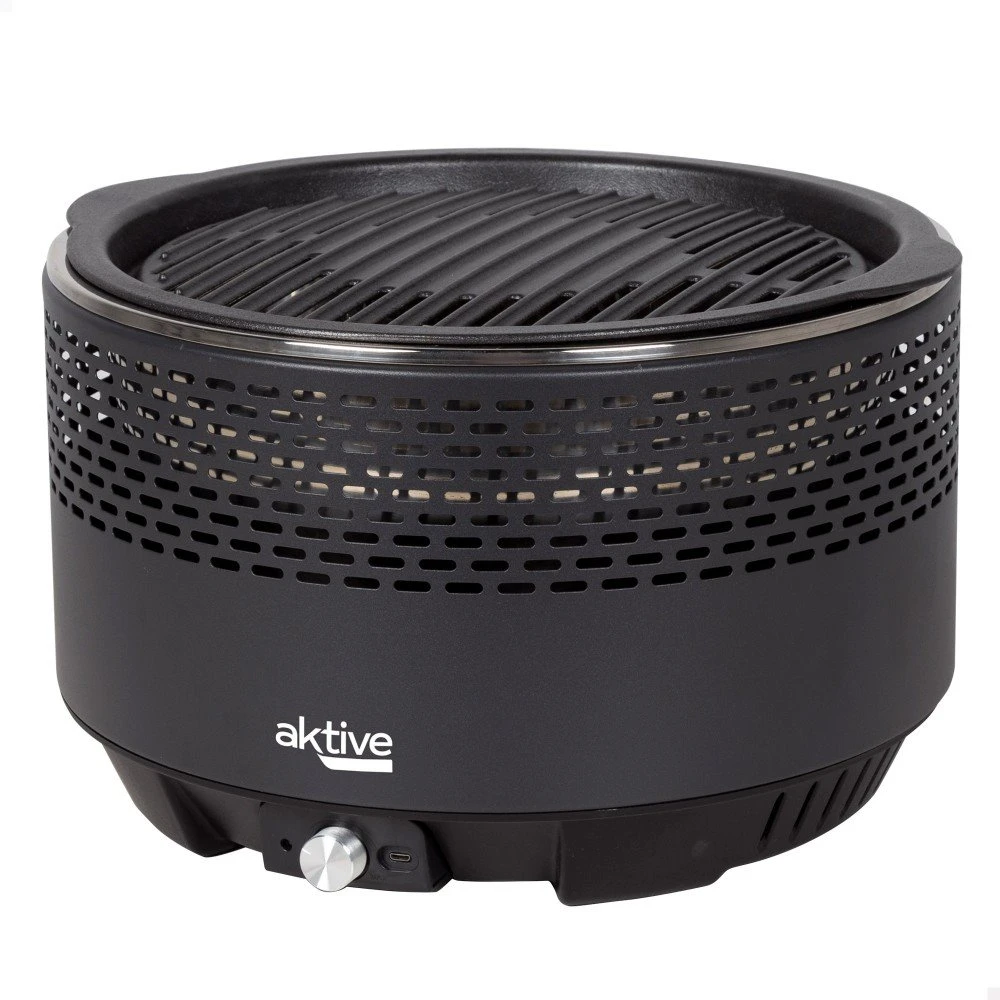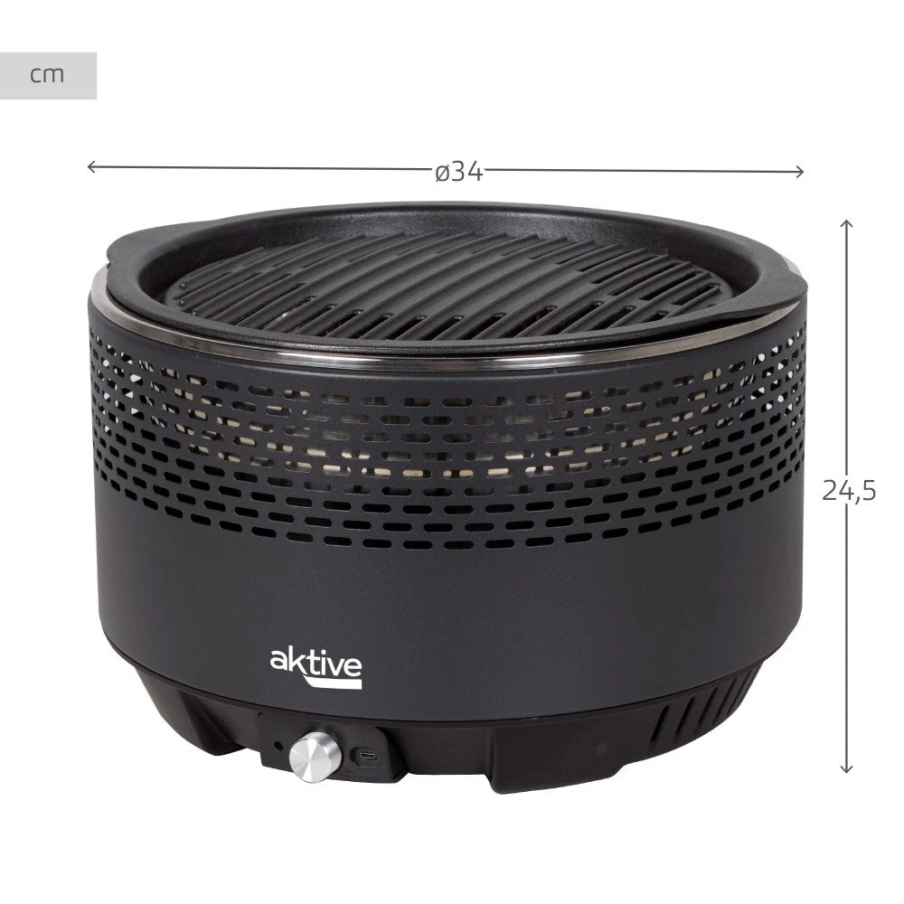 - Barbacoa carbón baja emisión de humo, redonda y color negro Aktive Barbecue. Está fabricada de acero inoxidable y mide Ø34×21,5 cm