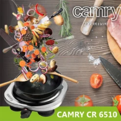 La potencia de la placa de cocina de CAMRY es de 1500 W, permitiendo que puedas calentar alimentos rápidamente. El diámetro del hornillo es de 185 mm y se conecta mediante toma de corriente