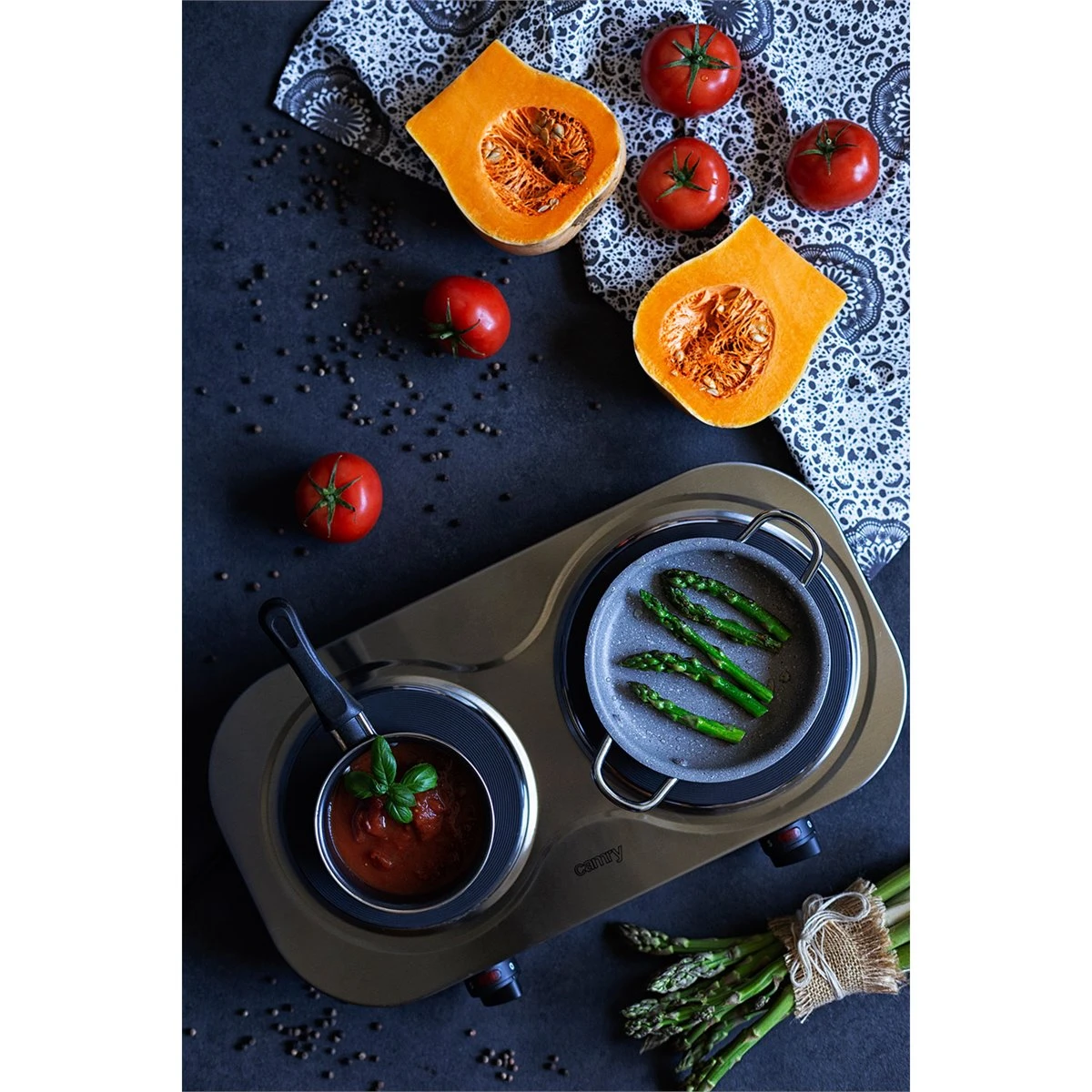 - 【GRAN POTENCIA】La gran potencia desarrollada te permite cocinar cualquier plato. El fuego de 18,5 cm tiene una potencia de 1500 W y el de 15,5 cm de 1000 W.