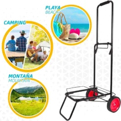- Peso máximo 50 kg: para transportar sombrilla, bolsa, sillas y nevera de playa sin cargar peso