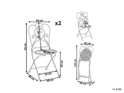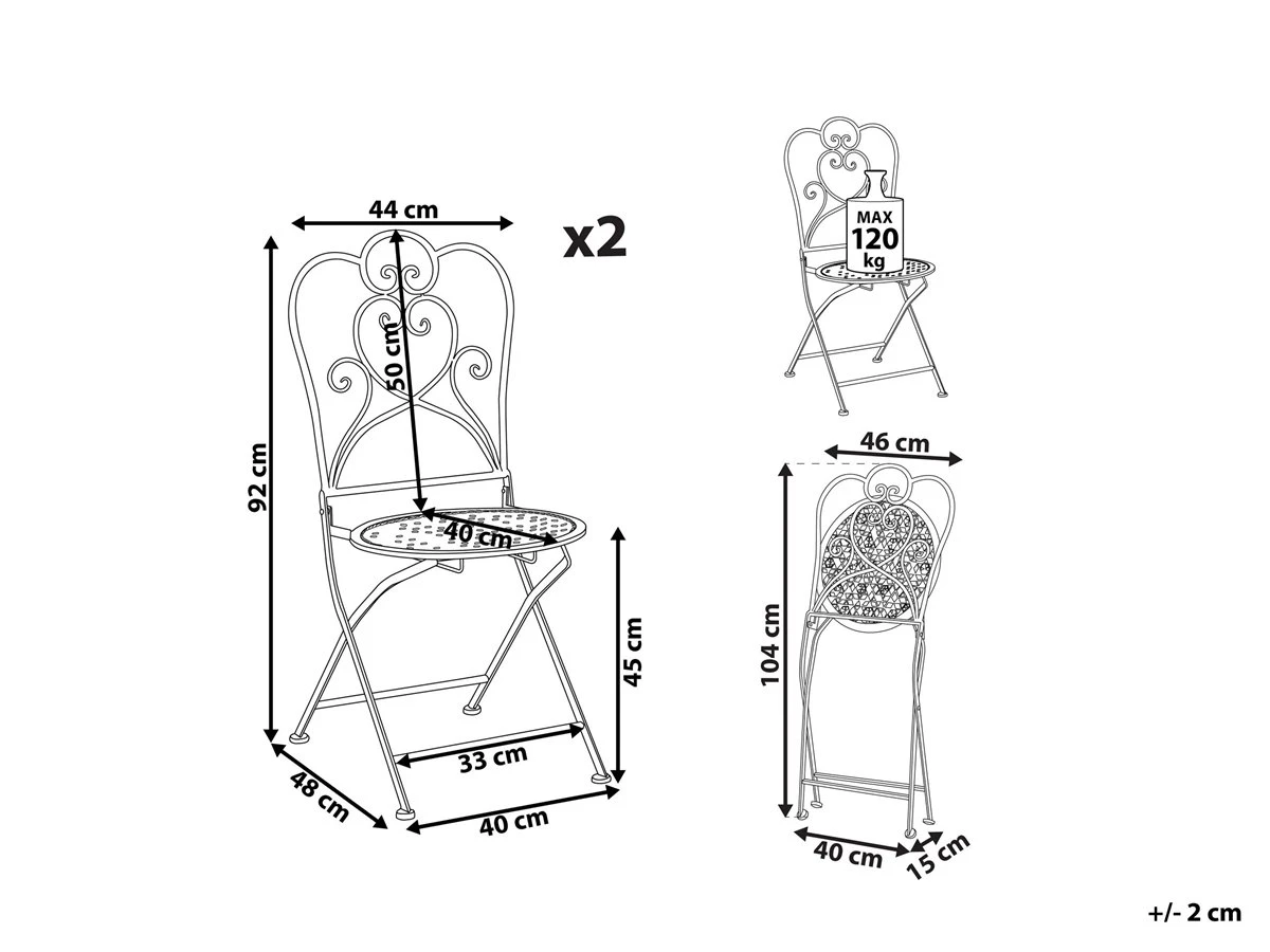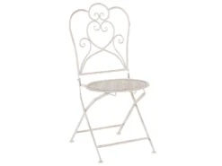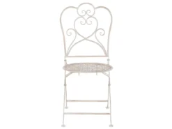 Juego de sillas de balcón. Disfruta del mejor descanso al aire libre con este conjunto de 2 sillas de balcón. El diseño inspirado en el estilo provenzal aporta elegancia a la decoración. De apariencia neutra, combina bien con cojines o mantas pertenecientes a cualquier esquema de color. Detalles: Tipo de Producto: Silla de jardín Estilo: Tradicional Color: Beige Tonalidad: Beige claro Tipo de material: Metal Material principal: Hierro Material de las patas: Metal Material del asiento: Metal Apoyabrazo: No Acabado: Revestimiento en polvo Plegable: Sí Apilable: No Dimensiones: Profundidad: 48 cm Altura del asiento: 45 cm Ancho: 44 cm Altura: 92 cm Superficie del asiento: 40×40 cm Peso: 10 kg Capacidad de peso: 120 kg La oferta incluye: 2 x Silla Ventajas: Diseño elegante, Combinación perfecta de colores y materiales, Apariencia elegante, Ideal para uso al aire libre, Material impermeable y muy fácil de conservar, Plegable, ahorra espacio, Muy ligero y fácil de desplazar Información de montaje: No requiere montaje Información adicional: Abre el embalaje con cuidado, especialmente cuando utilizas herramientas afiladas o puntiagudas, ya que pueden dañar el producto, El efecto desgastado o las manchas visibles son intencionales y no se consideran un defecto. Texto de resistencia: Gracias a su resistencia al agua, puedes utilizar el producto al aire libre y dejarlo a la intemperie durante lluvias ligeras. Si no es posible guardarlo en un lugar cerrado y protegido, recomendamos utilizar una funda protectora. La exposición prolongada a la humedad puede provocar daños en el mueble. Resistencia: Agua ligera / humedad Consejos de mantenimiento: Metal: 1.Cualquier daño a la capa de pintura exterior debe protegerse de la humedad 2.Para garantizar la protección contra la corrosión, evite los limpiadores alcalinos o ácidos. Después de limpiar, secar bien 3.Quite las tapas protectoras con regularidad para que salga todo el líquido, déjelas secar y utilice un spray anticorrosión si es necesario 4.Limpiar con detergentes suaves 5.Los muebles de acero y sus elementos no deben exponerse al agua. De lo contrario, existe la posibilidad de que el agua oxidada salga de las tuberías del marco 6.Cuando no estén en uso, los muebles deben guardarse en el interior o bajo una cubierta protectora 7.Para aumentar la durabilidad del artículo, manténgalo seco y recuerde la limpieza regular.