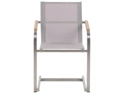 Conjunto de 2 sillas de jardín. Este juego de sillas te ayudará a utilizar tu espacio, ya que es adecuado para uso en exteriores, pero también se puede incorporar fácilmente en interiores. Con líneas clásicas y formas simples, ofrece un estilo versátil que encaja perfectamente con una variedad de estilos de decoración. El marco de acero complementado con apoyabrazos cubiertos de madera contrachapada y el asiento curvado ergonómicamente ofrece un asiento cómodo. Las sillas cuentan con materiales resistentes y fáciles de limpiar, perfectos para el uso diario. Combínalas con la mesa de la misma colección para crear un juego de comedor definitivo. Detalles: Tipo de Producto: Silla de jardín Estilo: Moderno Color: Gris Tipo de material: Metal Material principal: Poliéster Material adicional: Madera contrachapada Material de las patas: Acero Material del asiento: Material sintético Composición del Material: 90% PVC Apoyabrazo: Sí Acabado: Cepillado Plegable: No Apilable: Sí Dimensiones: Altura del apoyabrazos: 64 cm Profundidad: 55 cm Altura del asiento: 45 cm Ancho: 56 cm Altura: 85 cm Superficie del asiento: 44×43 cm Peso: 6 kg Capacidad de peso: 150 kg La oferta incluye: 2 x Silla Ventajas: Perfecto para todo tipo de exterior, Materiales de la más alta calidad, Ideal para uso en interiores y exteriores, Resistencia UV 5 (ISO 105-B02, Patas con tapas anti-deslizantes, Apilable, ahorra espacio Información de montaje: No requiere montaje Información adicional: El producto viene con un libro de cuidados detallado para ayudarte a mantener tus muebles en las mejores condiciones durante muchos años. Consulta estos consejos para garantizar el mantenimiento adecuado de tus muebles nuevos – encontrarás las instrucciones de mantenimiento junto con el manual de montaje. Texto de resistencia: El producto es resistente al agua, lo que significa que no se dañará expuesto a la lluvia o en contacto con otros líquidos. Puede dejarlo al aire libre incluso durante fuertes lluvias o humedad. Durante la temporada de invierno es recomendable almacenar el producto en el interior o bajo una cubierta impermeable. Resistencia: Agua Consejos de mantenimiento: Acero inoxidable: 1.Durante el invierno, utilice una funda protectora o guarde los muebles en el interior 2.Durante la lluvia, se recomienda utilizar una funda protectora 3.Limpiar solo con agentes de limpieza suaves. No utilice limpiadores alcalinos o ácidos 4.Las lluvias ácidas, el agua salada y las tormentas de arena pueden dañar la capa protectora. Poliéster: 1.Cuando no esté en uso, manténgalo en un lugar limpio y seco para protegerlo de las condiciones atmosféricas 2.Aspire con un accesorio adecuado 3.Limpiar con champú seco y una esponja húmeda o un limpiador suave.