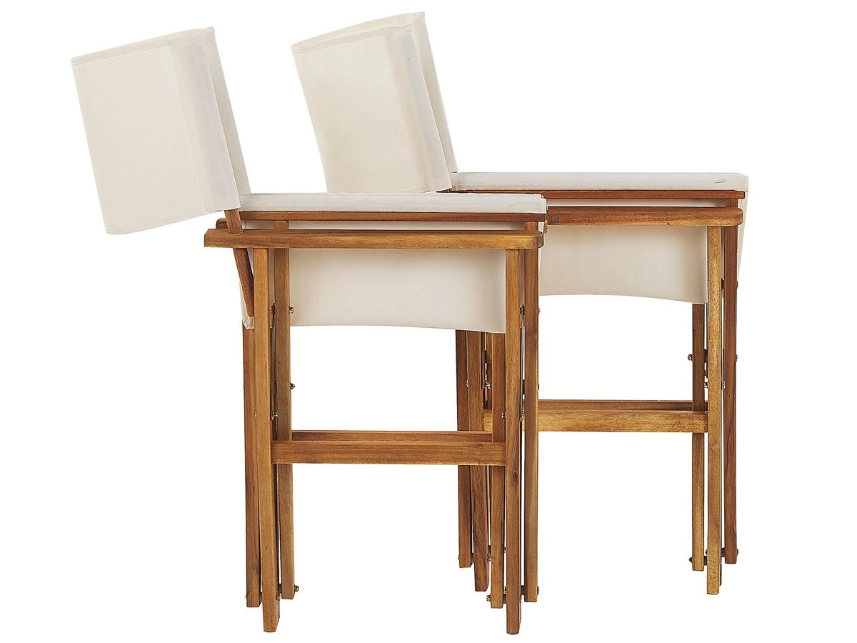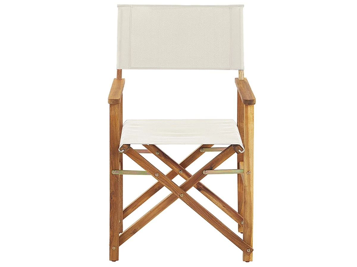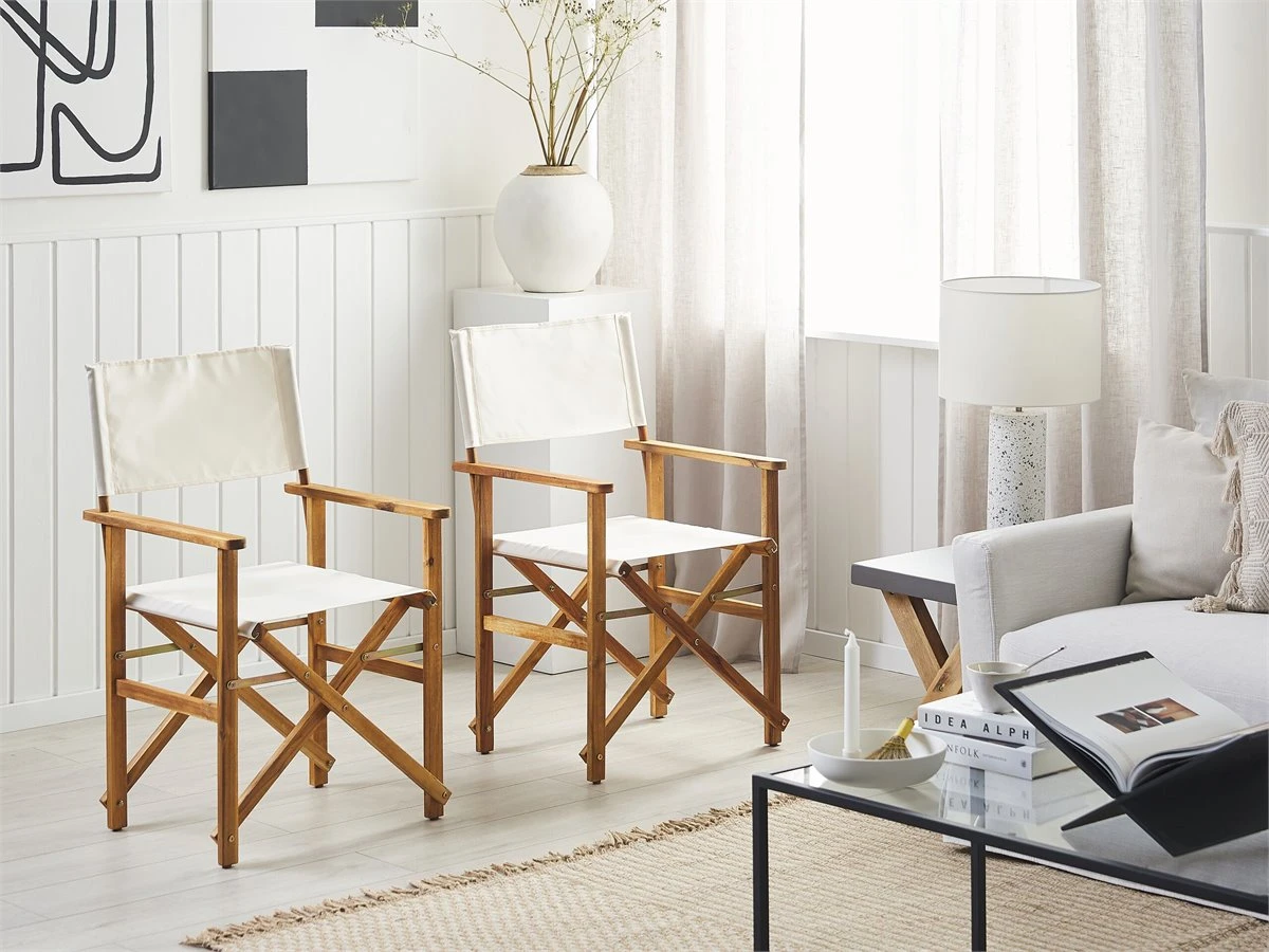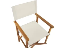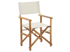Juego de sillas. Este conjunto de 2 sillas de jardín aporta un ambiente de Hollywood a cualquier sala de estar o área exterior. Están fabricadas de madera de acacia duradera y resistente con acabado natural que aporta un aspecto atemporal. El asiento y el respaldo de tela consiguen que las sillas parezcan sacadas directamente de un set de filmación. Son plegables, lo que facilita el almacenamiento. Detalles: Tipo de Producto: Silla de jardín Estilo: Retro Color: Blanco Tonalidad: Blanco crema Tipo de material: Tejido Material principal: Madera de acacia Material de las patas: Madera maciza Material del asiento: Tejido Composición del Material: 100% Poliéster Apoyabrazo: Sí Acabado: Aceitado Plegable: Sí Apilable: No Dimensiones: Altura del apoyabrazos: 64 cm Profundidad: 50 cm Altura del asiento: 48 cm Ancho: 50 cm Altura: 91 cm Superficie del asiento: 44×46 cm Peso: 4 kg Capacidad de peso: 120 kg La oferta incluye: 2 x Silla Ventajas: Diseño clásico, Ideal para todo tipo de decoración, Resistencia UV 6 (ISO 105-B02, Ideal para uso en interiores y exteriores, Plegable, ahorra espacio Información de montaje: Requiere montaje parcial. 20-40 min. Información adicional: Por favor, ten en cuenta que la madera es un producto natural, y cada pieza puede presentar ligeras variaciones. Las diferencias en el color o la textura, como las arrugas u otras características naturales, no se consideran un defecto ni tampoco una base de reclamación, El producto viene con un libro de cuidados detallado para ayudarte a mantener tus muebles en las mejores condiciones durante muchos años. Consulta estos consejos para garantizar el mantenimiento adecuado de tus muebles nuevos – encontrarás las instrucciones de mantenimiento junto con el manual de montaje. Texto de resistencia: Gracias a su resistencia al agua, puedes utilizar el producto al aire libre y dejarlo a la intemperie durante lluvias ligeras. Si no es posible guardarlo en un lugar cerrado y protegido, recomendamos utilizar una funda protectora. La exposición prolongada a la humedad puede provocar daños en el mueble. Resistencia: Agua ligera / humedad Consejos de mantenimiento: Madera de acacia: 1.Los muebles con acabado de aceite deben volverse a engrasar antes de ponerlos en uso y al menos una vez al año, especialmente en el clima húmedo 2.Limpiar con un limpiador suave y un paño suave en la dirección de la veta. Secar con un paño inmediatamente después de limpiar 3.Durante el invierno o en condiciones climáticas adversas, utilice una funda protectora o guarde los muebles en el interior. Poliéster: 1.Cuando no esté en uso, manténgalo en un lugar limpio y seco para protegerlo de las condiciones atmosféricas 2.Aspire con un accesorio adecuado 3.Limpiar con champú seco y una esponja húmeda o un limpiador suave.