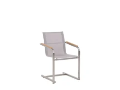 Juego de sillas de exterior. Este conjunto de 4 sillas de jardín es ideal para su uso en exteriores e interiores. Las líneas clásicas y la forma simple ofrecen un estilo versátil que combina bien con cualquier estilo de decoración. El estilo cantilever complementado con los reposabrazos cubiertos de madera de contrachapado garantizan un asiento cómodo. Las sillas están fabricadas con materiales resistentes de fácil mantenimiento. Combínalas con la mesa de la misma colección y crea el conjunto de jardín perfecto. Detalles: Tipo de Producto: Silla de jardín Estilo: Moderno Color: Beige Tipo de material: Metal Material principal: Poliéster Material adicional: Madera contrachapada Material de las patas: Acero Material del asiento: Tejido Composición del Material: 90% PVC Apoyabrazo: Sí Acabado: Cepillado Plegable: No Apilable: Sí Dimensiones: Altura del apoyabrazos: 64 cm Profundidad: 55 cm Altura del asiento: 45 cm Ancho: 56 cm Altura: 85 cm Superficie del asiento: 44×43 cm Peso: 6 kg Capacidad de peso: 150 kg La oferta incluye: 4 x Silla Ventajas: Perfecto para todo tipo de exterior, Materiales de la más alta calidad, Ideal para uso en interiores y exteriores, Resistencia UV 5 (ISO 105-B02, Patas con tapas anti-deslizantes, Apilable, ahorra espacio Información de montaje: No requiere montaje Información adicional: El producto viene con un libro de cuidados detallado para ayudarte a mantener tus muebles en las mejores condiciones durante muchos años. Consulta estos consejos para garantizar el mantenimiento adecuado de tus muebles nuevos – encontrarás las instrucciones de mantenimiento junto con el manual de montaje. Texto de resistencia: El producto es resistente al agua, lo que significa que no se dañará expuesto a la lluvia o en contacto con otros líquidos. Puede dejarlo al aire libre incluso durante fuertes lluvias o humedad. Durante la temporada de invierno es recomendable almacenar el producto en el interior o bajo una cubierta impermeable. Resistencia: Agua Consejos de mantenimiento: Acero inoxidable: 1.Limpiar solo con agentes de limpieza suaves. No utilice limpiadores alcalinos o ácidos 2.Las lluvias ácidas, el agua salada y las tormentas de arena pueden dañar la capa protectora 3.Durante el invierno, utilice una funda protectora o guarde los muebles en el interior 4.Durante la lluvia, se recomienda utilizar una funda protectora. Poliéster: 1.Limpiar con champú seco y una esponja húmeda o un limpiador suave 2.Cuando no esté en uso, manténgalo en un lugar limpio y seco para protegerlo de las condiciones atmosféricas 3.Aspire con un accesorio adecuado.