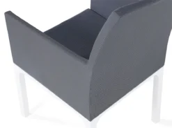Juego de sillas de jardín. Este conjunto de 4 sillas de jardín de estilo clásico combina bien con cualquier decoración exterior. Está fabricado a partir de tela de poliéster resistente a los rayo UV. Los reposabrazos empotrados y el respaldo alto ofrecen comodidad. Los cojines gruesos vienen con una funda impermeable. Detalles: Tipo de Producto: Silla de jardín Estilo: Moderno Color: Gris Tonalidad: Gris oscuro Tipo de material: Tejido Material principal: Poliéster Material adicional: Aluminio Material de las patas: Metal Material del asiento: Tejido Composición del Material: 100% Poliéster Apoyabrazo: Sí Acabado: Revestimiento en polvo Plegable: No Apilable: No Dimensiones: Altura del apoyabrazos: 64 cm Profundidad: 62 cm Espesor del asiento: 5 cm Altura del asiento: 46 cm Ancho: 52 cm Altura: 91 cm Superficie del asiento: 45×45 cm Peso: 6 kg Capacidad de peso: 130 kg La oferta incluye: 4 x Silla Ventajas: Anchos repozabrazos y respaldo acogedor, Diseño tradicional con un toque moderno, Robusto marco resistente a la corrosión, Ideal para uso al aire libre, Resistencia UV 5 (ISO 105-B02 Información de montaje: Requiere montaje de las patas. Más de 60 min. Información adicional: Para una mayor estabilidad y seguridad de uso, se recomienda verificar 2 semanas después de la instalación que el montaje del producto ha sido realizado de forma correcta. Revisa, al menos una vez cada 3 meses, que los tornillos estén bien apretados. Texto de resistencia: El producto es resistente al agua, lo que significa que no se dañará expuesto a la lluvia o en contacto con otros líquidos. Puede dejarlo al aire libre incluso durante fuertes lluvias o humedad. Durante la temporada de invierno es recomendable almacenar el producto en el interior o bajo una cubierta impermeable. Resistencia: Agua Consejos de mantenimiento: Aluminio: 1.Fuera de temporada, utilice una funda protectora o guarde los muebles en un lugar fresco y seco 2.Limpiar con agua jabonosa y detergentes suaves. Quitar el polvo con un paño suave. Poliéster: 1.El material es extremadamente resistente a la intemperie. Sin embargo, se recomienda utilizar una funda protectora para la temporada de invierno o, si es posible, guardar los muebles en un lugar fresco y seco 2.Manténgalo alejado de fuentes de calor, como parrilla o fuego, ya que las chispas pueden causar daños graves. No coloque utensilios calientes directamente sobre la superficie, 3.Limpiar con un limpiador a base de jabón suave y un paño suave