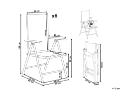 Conjunto de sillas de jardín grises. Elegantes y versátiles, las sillas cuentan con un marco ligero de aluminio y ofrecen asientos muy confortables. El asiento y el respaldo están hechos de un textil trenzado resistente a la intemperie. Las sillas no solo tienen un aspecto elegante, sino que también son muy cómodas gracias al respaldo ajustable en 5 posiciones. El diseño clásico de estas sillas plegables combina perfectamente con cualquier estilo de decoración. Detalles: Tipo de Producto: Silla de jardín Estilo: Industrial Color: Gris Tonalidad: Gris claro Tipo de material: Metal Material principal: Aluminio Material adicional: Poliéster Material de las patas: Metal Material del asiento: Tejido Composición del Material: 90% PVC Apoyabrazo: Sí Acabado: Revestimiento en polvo Plegable: Sí Apilable: No Dimensiones: Altura del apoyabrazos: 67 cm Profundidad: 65 cm Altura del asiento: 43 cm Ancho: 54 cm Altura: 108 cm Superficie del asiento: 44×44 cm Peso: 4 kg Capacidad de peso: 130 kg La oferta incluye: 6 x Silla Ventajas: Respaldo ajustable en 5 posiciones, Muy cómodo, Perfecto para todo tipo de exterior, Resistencia UV, Ideal para uso al aire libre Información de montaje: No requiere montaje Texto de resistencia: El producto es resistente al agua, lo que significa que no se dañará expuesto a la lluvia o en contacto con otros líquidos. Puede dejarlo al aire libre incluso durante fuertes lluvias o humedad. Durante la temporada de invierno es recomendable almacenar el producto en el interior o bajo una cubierta impermeable. Resistencia: Agua Consejos de mantenimiento: Aluminio: 1.Fuera de temporada, utilice una funda protectora o guarde los muebles en un lugar fresco y seco 2.Limpiar con agua jabonosa y detergentes suaves. Quitar el polvo con un paño suave. Poliéster: 1.El material es extremadamente resistente a la intemperie. Sin embargo, se recomienda utilizar una funda protectora para la temporada de invierno o, si es posible, guardar los muebles en un lugar fresco y seco 2.Manténgalo alejado de fuentes de calor, como parrilla o fuego, ya que las chispas pueden causar daños graves. No coloque utensilios calientes directamente sobre la superficie, 3.Limpiar con un limpiador a base de jabón suave y un paño suave