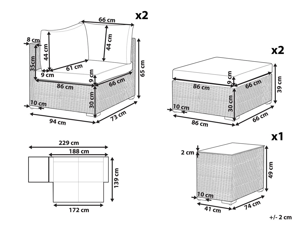Conjunto De Exterior 2 Plazas De Ratán Marrón/blanco Crema NOTO