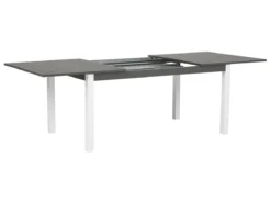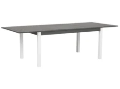 Moderno conjunto de jardín para 8 personas. Disfruta de tus comidas de la tarde y fiestas al aire libre con tus amigos sentados en este conjunto de jardín funcional. Hecha de aluminio duradero, es resistente a los rayos UV, por lo que no pierde color cuando se expone a la luz solar. La parte superior extendida puede alojar cómodamente todos tus invitados, mientras que la base blanca de 4 patas proporciona la máxima estabilidad. Las sillas tienen un robusto marco de aluminio crea un ambiente industrial, mientras que los cojines acolchados y gruesos agregan un componente acogedor al atractivo general de los muebles. El conjunto funciona bien con cualquier espacio exterior moderno o contemporáneo, y agrega un toque industrial a cualquier ambiente. Detalles: Tipo de Producto: Conjunto de comedor Estilo: Moderno Color: Gris Tipo de material: Metal Material principal: Aluminio Material de la superficie: Metal Composición del Material: 100% Poliéster Densidad de espuma del asiento: 18 kg/m3 Dimensiones: Dimensiones de la silla: 51x57x87 cm Espesor del asiento: 5 cm Altura del asiento: 48 cm Dimensiones de la mesa: 168/248x100x75 cm Peso: 91 kg Capacidad de peso de la silla: 120 kg Capacidad de peso de la mesa: 40 kg La oferta incluye: 1 x Mesa, 8 x Silla, 8 x Cojín del respaldo Ventajas: Perfecto para cenar en grupos más grandes, Las tiras ofrecen una fijación segura, Solida estructura, No requiere mantenimiento regular, Resistencia UV 4 (ISO 105-B05, La mesa extensible proporciona espacio adicional Información de montaje: Requiere montaje parcial. 5-15 min. Texto de resistencia: El producto es resistente al agua, lo que significa que no se dañará expuesto a la lluvia o en contacto con otros líquidos. Puede dejarlo al aire libre incluso durante fuertes lluvias o humedad. Durante la temporada de invierno es recomendable almacenar el producto en el interior o bajo una cubierta impermeable. Resistencia: Agua Consejos de mantenimiento: Aluminio: 1.Fuera de temporada, utilice una funda protectora o guarde los muebles en un lugar fresco y seco 2.Limpiar con agua jabonosa y detergentes suaves. Quitar el polvo con un paño suave. Poliéster: 1.Cuando no esté en uso, manténgalo en un lugar limpio y seco para protegerlo de las condiciones atmosféricas 2.Aspire con un accesorio adecuado 3.Limpiar con champú seco y una esponja húmeda o un limpiador suave.