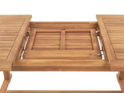 Set de jardín de madera con 6 sillas y cojines. Ponte cómodo y disfruta de al aire libre con este conjunto de comedor. Fabricado de madera de acacia de alta calidad, combina bien con cualquier entorno gracias a su acabado natural y ligero. Las sillas plegables incluyen cojines a juego que garantizan la mayor comodidad. La parte superior extensible hace que sea ideal para cenas familiares o fiestas en el jardín. Detalles: Tipo de Producto: Conjunto de comedor Estilo: Rústico Color: Madera clara Tipo de material: Madera maciza Material principal: Madera de acacia Material adicional: Acero Material de la superficie: Madera maciza Composición del Material: 100% Poliéster Acabado: Aceitado Dimensiones: Dimensiones de la silla: 54x69x105 cm Altura del asiento: 44 cm Dimensiones de la mesa: 160/220x90x74 cm Peso: 142 kg Capacidad de peso de la silla: 160 kg Capacidad de peso de la mesa: 75 kg La oferta incluye: 1 x Mesa, 6 x Silla, 6 x Cojín Ventajas: Respaldo ajustable en 6 posiciones, Tablero con agujero para sombrilla, Las tiras ofrecen una fijación segura, Cómodos apoyabrazos, Materiales pensados para el uso en el exterior, Resistencia UV 5 (ISO 105-B02, Plegable, ahorra espacio Información de montaje: Requiere montaje parcial. 20-40 min. Información adicional: Por favor, ten en cuenta que la madera es un producto natural, y cada pieza puede presentar ligeras variaciones. Las diferencias en el color o la textura, como las arrugas u otras características naturales, no se consideran un defecto ni tampoco una base de reclamación, El producto viene con un libro de cuidados detallado para ayudarte a mantener tus muebles en las mejores condiciones durante muchos años. Consulta estos consejos para garantizar el mantenimiento adecuado de tus muebles nuevos – encontrarás las instrucciones de mantenimiento junto con el manual de montaje. Texto de resistencia: Gracias a su resistencia al agua, puedes utilizar el producto al aire libre y dejarlo a la intemperie durante lluvias ligeras. Si no es posible guardarlo en un lugar cerrado y protegido, recomendamos utilizar una funda protectora. La exposición prolongada a la humedad puede provocar daños en el mueble. Resistencia: Agua ligera / humedad Consejos de mantenimiento: Madera de acacia: 1.Los muebles con acabado de aceite deben volverse a engrasar antes de ponerlos en uso y al menos una vez al año, especialmente en el clima húmedo 2.Limpiar con un limpiador suave y un paño suave en la dirección de la veta. Secar con un paño inmediatamente después de limpiar 3.Durante el invierno o en condiciones climáticas adversas, utilice una funda protectora o guarde los muebles en el interior. Poliéster: 1.Limpiar con champú seco y una esponja húmeda o un limpiador suave 2.Cuando no esté en uso, manténgalo en un lugar limpio y seco para protegerlo de las condiciones atmosféricas 3.Aspire con un accesorio adecuado.
