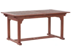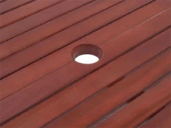Conjunto de jardín en madera. Mejora la comodidad de tu área al aire libre con este elegante juego de comedor de inspiración rústica. Hecho de madera de acacia de alta calidad en color marrón oscuro, se puede colocar en diferentes entornos. También presenta una alta resistencia a los rayos UV y a la intemperie, lo que garantiza la longevidad a lo largo de los años. Los respaldos reclinables garantizan la máxima comodidad, lo que te permite configurar esta pieza como desees, y una capacidad de plegado te permite almacenar el conjunto cuando no es necesario. Detalles: Tipo de Producto: Conjunto de comedor Estilo: Rústico Color: Madera oscura Tonalidad: Rojo oscuro Tipo de material: Madera maciza Material principal: Madera de acacia Material adicional: Acero Material de la superficie: Madera maciza Acabado: Aceitado Dimensiones: Dimensiones de la silla: 54x69x105 cm Altura del asiento: 44 cm Dimensiones de la mesa: 160/220x90x74 cm Peso: 106 kg Capacidad de peso de la silla: 160 kg Capacidad de peso de la mesa: 75 kg La oferta incluye: 1 x Mesa, 6 x Silla Ventajas: Respaldo ajustable en 6 posiciones, Tablero con agujero para sombrilla, Combina con todo tipo de decoración, Diseño atemporal, Apariencia moderna y calidad durante muchos años, Plegable, ahorra espacio, La mesa extensible proporciona espacio adicional Información de montaje: Requiere montaje parcial. 20-40 min. Información adicional: Para una mayor estabilidad y seguridad de uso, se recomienda verificar 2 semanas después de la instalación que el montaje del producto ha sido realizado de forma correcta. Revisa, al menos una vez cada 3 meses, que los tornillos estén bien apretados. Por favor, ten en cuenta que la madera es un producto natural, y cada pieza puede presentar ligeras variaciones. Las diferencias en el color o la textura, como las arrugas u otras características naturales, no se consideran un defecto ni tampoco una base de reclamación, El producto viene con un libro de cuidados detallado para ayudarte a mantener tus muebles en las mejores condiciones durante muchos años. Consulta estos consejos para garantizar el mantenimiento adecuado de tus muebles nuevos – encontrarás las instrucciones de mantenimiento junto con el manual de montaje. Texto de resistencia: Gracias a su resistencia al agua, puedes utilizar el producto al aire libre y dejarlo a la intemperie durante lluvias ligeras. Si no es posible guardarlo en un lugar cerrado y protegido, recomendamos utilizar una funda protectora. La exposición prolongada a la humedad puede provocar daños en el mueble. Resistencia: Agua ligera / humedad Consejos de mantenimiento: Madera de acacia: 1.Los muebles con acabado de aceite deben volverse a engrasar antes de ponerlos en uso y al menos una vez al año, especialmente en el clima húmedo 2.Limpiar con un limpiador suave y un paño suave en la dirección de la veta. Secar con un paño inmediatamente después de limpiar 3.Durante el invierno o en condiciones climáticas adversas, utilice una funda protectora o guarde los muebles en el interior.