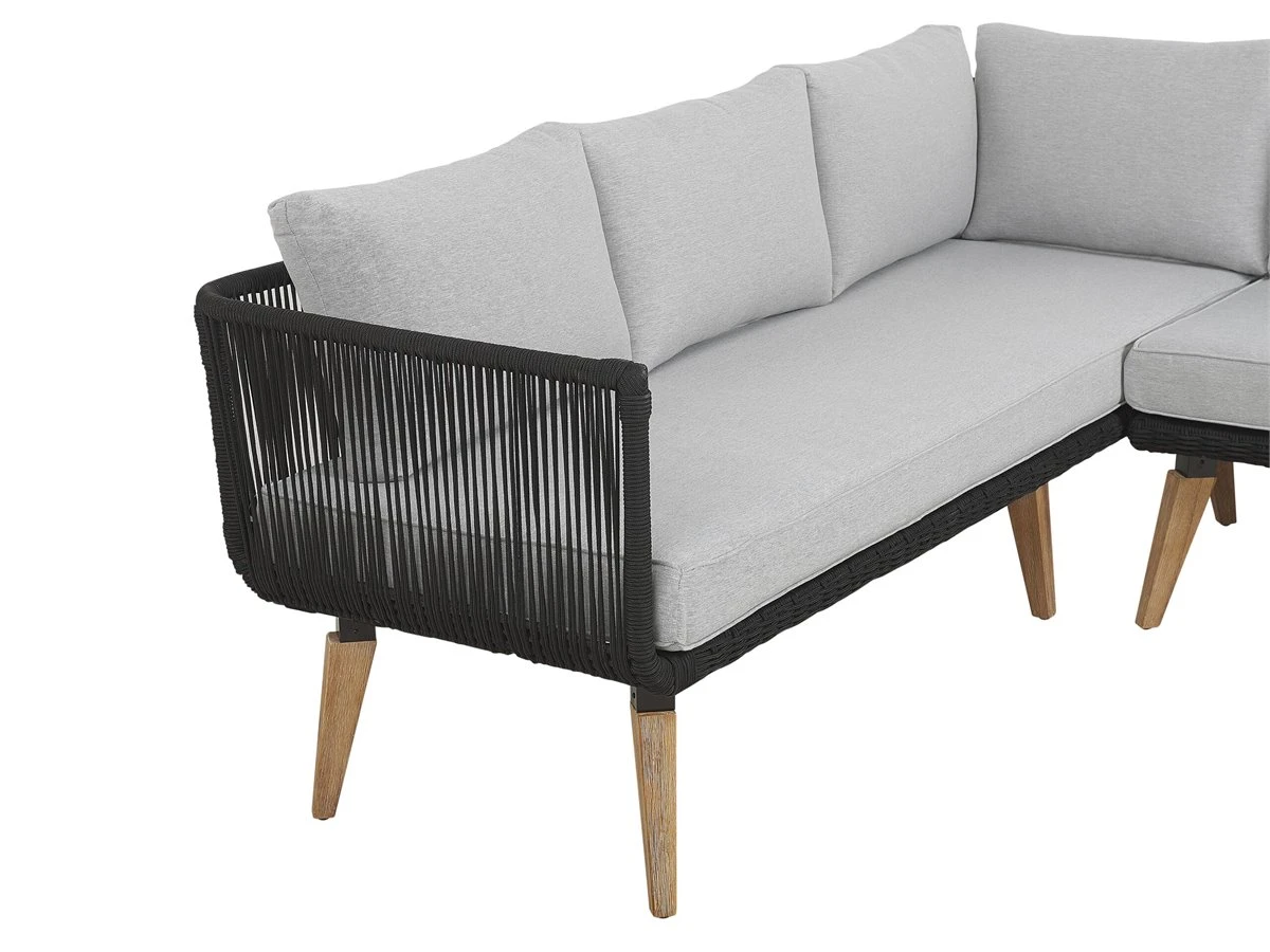 Moderno conjunto de jardín. Añade a tu zona exterior este conjunto de sala de estar para jardín. Los reposabrazos y los cojines de asiento acolchado del sofá ofrecen la máxima comodidad. La mesa de madera de acacia de acabado natural aporta un toque rústico al estilo. Combina bien con un cualquier espacio al aire libre de diseño tradicional, contemporáneo o minimalista. Detalles: Tipo de Producto: Conjunto de jardín Estilo: Moderno Color: Gris Tonalidad: Gris pardo Tipo de material: Madera maciza Material principal: Madera de acacia Material adicional: Acero Composición del Material: 100% Poliéster Forma: Forma de L Acabado: Cepillado Densidad de espuma del asiento: 18 kg/m3 Dimensiones: Dimensiones del sofá de 2 plazas: 75x122x75 Dimensiones del sofá de 3 plazas: 75x198x75 Dimensiones de la mesa de centro: 74x74x40 Espesor del asiento: 10 cm Altura del asiento: 47 cm Dimensiones totales: 211x200x75 Peso: 60 kg Capacidad de peso de la mesa: 60 kg Capacidad de peso por persona: 130 kg La oferta incluye: 1 x Mesa de centro, 1 x Sofá esquinero Ventajas: Confort del asiento óptimo, Diseño atemporal, Solida estructura, Detalles perfectos, Resistencia UV 5 (ISO 105-B02, Ideal para uso en interiores y exteriores, Fundas de cojines con costuras ocultas y cremalleras Información de montaje: Requiere montaje parcial. Más de 60 min. Información adicional: El producto viene con un libro de cuidados detallado para ayudarte a mantener tus muebles en las mejores condiciones durante muchos años. Consulta estos consejos para garantizar el mantenimiento adecuado de tus muebles nuevos – encontrarás las instrucciones de mantenimiento junto con el manual de montaje. Texto de resistencia: Los muebles resistentes a los rayos UV muestran una mayor resistencia a la decoloración. Sin embargo, recomendamos que el producto se guarde en el interior cuando no esté en uso. Esto asegurará la máxima durabilidad de los muebles. Resistencia: Rayos UV Consejos de mantenimiento: Madera de acacia: 1.Limpiar con un limpiador suave y un paño suave en la dirección de la veta. Secar con un paño inmediatamente después de limpiar 2.Durante el invierno o en condiciones climáticas adversas, utilice una funda protectora o guarde los muebles en el interior 3.Los muebles con acabado de aceite deben volverse a engrasar antes de ponerlos en uso y al menos una vez al año, especialmente en el clima húmedo. Poliéster: 1.No secar en secadora ni planchar 2.Lavar a mano únicamente, usar agua fría y un detergente suave 3.Cuando no esté en uso, manténgalo en un lugar limpio y seco para protegerlo de las condiciones atmosféricas. Aluminio: 1.Fuera de temporada, utilice una funda protectora o guarde los muebles en un lugar fresco y seco 2.Limpiar con agua jabonosa y detergentes suaves. Quitar el polvo con un paño suave.