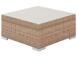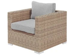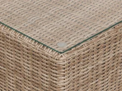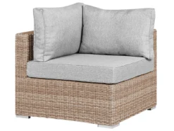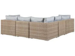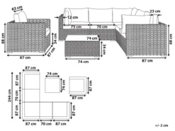 Moderno conjunto de jardín. Gracias a la comodidad perfecta y la apariencia elegante de este conjunto de jardín experimentarás un verdadero lujo. Este modelo presentado consta de un amplio sillón y un gran sofá esquinero y proporciona espacio suficiente para 6 personas. Los módulos individuales se pueden mover o configurar por separado, lo que los hace muy versátiles. Los prácticos cojines están rellenos con espuma gruesa. Sus fundas de color gris están hechas de poliéster de alta calidad, por eso son muy fáciles de limpiar y resistentes a la suciedad y humedad. Las fundas de cojines se pueden quitar y lavar a mano o en la lavadora hasta 30°C. El marco de aluminio duradero garantiza una estabilidad extraordinaria y, debido a su poco peso, es fácil de transportar. La mesa de vidrio templado tiene bordes redondeados y ofrece suficiente espacio para bebidas, postres helados y para leer durante las vacaciones. Detalles: Tipo de Producto: Conjunto longue Estilo: Moderno Color: Marrón Tipo de material: Ratán sintético Material principal: Ratán sintético Material adicional: Aluminio Material de la superficie: Vidrio Composición del Material: 100% Poliéster Forma: Forma de L Acabado: Revestimiento en polvo Orientación: Izquierda Densidad de espuma del asiento: 20 kg/m3 Dimensiones: Dimensiones del sillón: 87x87x68 Dimensiones de la mesa de centro: 74x74x34 Dimesiones del sofá esquinero: 87x87x68 Espesor del asiento: 13 cm Altura del asiento: 47 cm Dimensiones totales: 244x244x68 Peso: 100 kg Capacidad de peso de la mesa: 60 kg Capacidad de peso por persona: 120 kg La oferta incluye: 1 x Mesa de centro, 1 x Sillón, 2 x Asiento sin reposabrazos, 3 x Rinconera, 6 x Cojines del asiento, 9 x Cojín del respaldo Ventajas: Modular: para diferentes posibilidades de ubicación, Ideal para grandes reuniones con amigos y familiares, Confort del asiento óptimo, Perfecto para todo tipo de exterior, Resistencia UV 5 (ISO 105-B02, Permanece estable incluso en superficies irregulares, Fundas de cojines impermeables y extraíbles Información de montaje: Requiere montaje parcial. 20-40 min. Información adicional: Abre el embalaje con cuidado, especialmente cuando utilizas herramientas afiladas o puntiagudas, ya que pueden dañar el producto, El producto viene con un libro de cuidados detallado para ayudarte a mantener tus muebles en las mejores condiciones durante muchos años. Consulta estos consejos para garantizar el mantenimiento adecuado de tus muebles nuevos – encontrarás las instrucciones de mantenimiento junto con el manual de montaje. Texto de resistencia: El producto es resistente al agua, lo que significa que no se dañará expuesto a la lluvia o en contacto con otros líquidos. Puede dejarlo al aire libre incluso durante fuertes lluvias o humedad. Durante la temporada de invierno es recomendable almacenar el producto en el interior o bajo una cubierta impermeable. Resistencia: Rayos UV Consejos de mantenimiento: Ratán sintético: 1.Para alargar la vida útil del mueble, protéjalo de la exposición directa al sol 2.Se recomienda utilizar una funda protectora para la temporada de invierno o, si es posible, para mantener los muebles secos y frescos en el interior 3.Limpiar con detergentes a base de jabón. No utilizar limpiadores químicos corrosivos 4.Los utensilios o accesorios de vidrio pueden sobrecalentar la superficie. Poliéster: 1.No secar en secadora ni planchar 2.Lavar a mano únicamente, usar agua fría y un detergente suave 3.Cuando no esté en uso, manténgalo en un lugar limpio y seco para protegerlo de las condiciones atmosféricas.