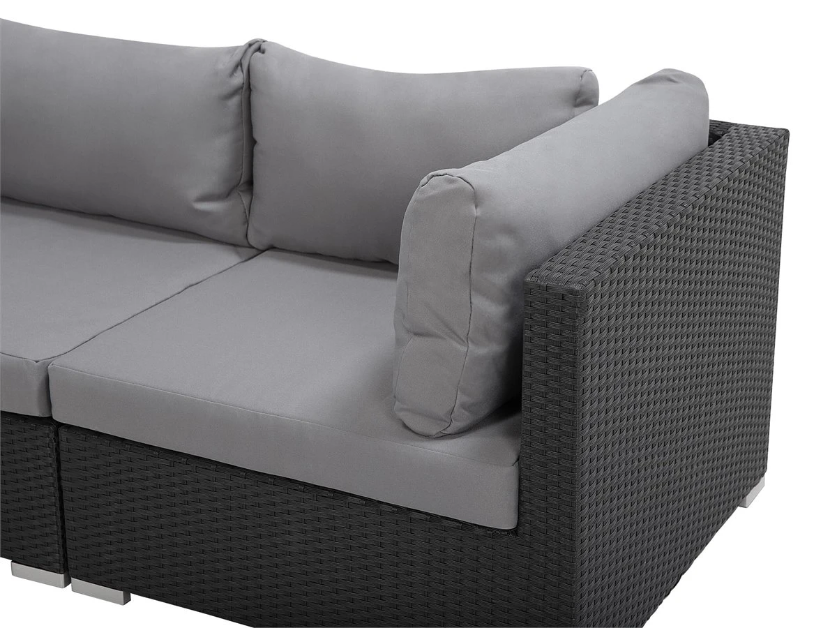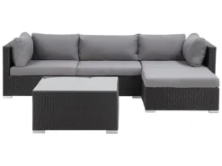 Lujoso conjunto de jardín. El conjunto de jardín es un sueño hecho realidad para los amantes del aire libre. Este hermoso conjunto te permite disfrutar al máximo de los días de verano. Las piezas pueden ser movidas para satisfacer tus gustos específicos. Los cojines en color gris brindan comodidad y le dan un toque de elegancia. El sofá se complementa con una llamativa mesa de café con superficie de vidrio. El mimbre gris es elaborado a partir de material sintético que imita a la perfección el natural. Detalles: Tipo de Producto: Conjunto longue Estilo: Moderno Color: Gris Tonalidad: Gris claro Tipo de material: Ratán sintético Material principal: Ratán sintético Material adicional: Vidrio templado Composición del Material: 100% Poliéster Forma: Forma de L Acabado: Revestimiento en polvo Orientación: Derecha Densidad de espuma del asiento: 25 kg/m3 Dimensiones: Dimensiones del sofá de 3 plazas: 245x84x64 Dimensiones de la mesa de centro: 72x72x38 Dimensiones del reposapies: 75x75x37 cm Espesor del asiento: 10 cm Altura del asiento: 37 cm Dimensiones totales: 64x245x159 Peso: 58 kg Capacidad de peso de la mesa: 70 kg Capacidad de peso por persona: 120 kg La oferta incluye: 1 x Puf, 1 x Mesa de centro, 2 x Rinconera, 1 x Asiento sin reposabrazos, Cojines incluidos Ventajas: Asiento bajo y profundo, El grueso acolchado del asiento brinda comodidad, Diseño atemporal, Robusto marco resistente a la corrosión, Resistencia UV 5 (ISO 105-B02, Fundas de cojines con costuras ocultas y cremalleras, Tablero en vidrio templado de seguridad Información de montaje: No requiere montaje. Más de 60 min. Información adicional: El producto viene con un libro de cuidados detallado para ayudarte a mantener tus muebles en las mejores condiciones durante muchos años. Consulta estos consejos para garantizar el mantenimiento adecuado de tus muebles nuevos – encontrarás las instrucciones de mantenimiento junto con el manual de montaje. Texto de resistencia: Gracias a su resistencia al agua, puedes utilizar el producto al aire libre y dejarlo a la intemperie durante lluvias ligeras. Si no es posible guardarlo en un lugar cerrado y protegido, recomendamos utilizar una funda protectora. La exposición prolongada a la humedad puede provocar daños en el mueble. Resistencia: Agua ligera / humedad Consejos de mantenimiento: Ratán sintético: 1.Se recomienda utilizar una funda protectora para la temporada de invierno o, si es posible, para mantener los muebles secos y frescos en el interior 2.Limpiar con detergentes a base de jabón. No utilizar limpiadores químicos corrosivos 3.Los utensilios o accesorios de vidrio pueden sobrecalentar la superficie 4.Para alargar la vida útil del mueble, protéjalo de la exposición directa al sol. Poliéster: 1.Lavar a mano únicamente, usar agua fría y un detergente suave 2.Cuando no esté en uso, manténgalo en un lugar limpio y seco para protegerlo de las condiciones atmosféricas 3.No secar en secadora ni planchar. Vidrio templado: 1.Secar después de la lluvia o la nieve. Durante el invierno, utilice una funda protectora o guarde los muebles en el interior 2.Para evitar rayones, no use un limpiador cremoso 3.Limpiar con un detergente suave o acondicionador de vidrio con un paño suave. Secar después de limpiar.