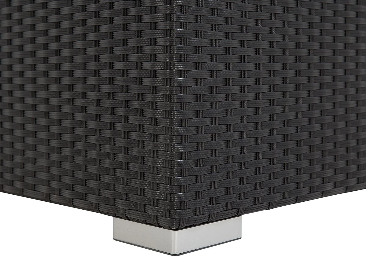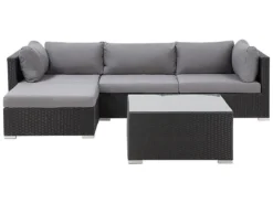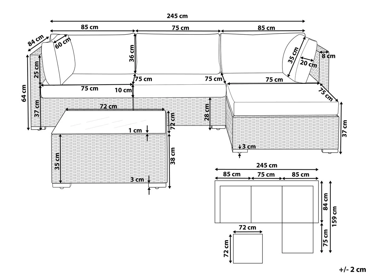 Lujoso conjunto de jardín. El conjunto de jardín es un sueño hecho realidad para los amantes del aire libre. Este hermoso conjunto te permite disfrutar al máximo de los días de verano. Las piezas pueden ser movidas para satisfacer tus gustos específicos. Los cojines en color beige brindan comodidad y le dan un toque de elegancia. El sofá se complementa con una llamativa mesa de café con superficie de vidrio. El mimbre blanco es elaborado a partir de material sintético que imita a la perfección el natural. Detalles: Tipo de Producto: Conjunto longue Estilo: Moderno Color: Blanco Tonalidad: Arena Tipo de material: Ratán sintético Material principal: Ratán sintético Material adicional: Vidrio templado Composición del Material: 100% Poliéster Forma: Forma de L Acabado: Revestimiento en polvo Densidad de espuma del asiento: 25 kg/m3 Dimensiones: Dimensiones de la mesa de centro: 72x72x38 Dimensiones del reposapies: 37x75x75 cm Espesor del asiento: 10 cm Altura del asiento: 38 cm Dimensiones del sofá: 64x245x84 Dimensiones totales: 64x245x159 Peso: 59 kg Capacidad de peso de la mesa: 70 kg Capacidad de peso por persona: 120 kg La oferta incluye: 1 x Puf, 1 x Mesa de centro, 2 x Rinconera, 1 x Asiento sin reposabrazos, Cojines incluidos Ventajas: Asiento bajo y profundo, El grueso acolchado del asiento brinda comodidad, Diseño atemporal, Robusto marco resistente a la corrosión, Resistencia UV 5 (ISO 105-B02, Fundas de cojines con costuras ocultas y cremalleras, Tablero en vidrio templado de seguridad Información de montaje: No requiere montaje Información adicional: El producto viene con un libro de cuidados detallado para ayudarte a mantener tus muebles en las mejores condiciones durante muchos años. Consulta estos consejos para garantizar el mantenimiento adecuado de tus muebles nuevos – encontrarás las instrucciones de mantenimiento junto con el manual de montaje. Texto de resistencia: Gracias a su resistencia al agua, puedes utilizar el producto al aire libre y dejarlo a la intemperie durante lluvias ligeras. Si no es posible guardarlo en un lugar cerrado y protegido, recomendamos utilizar una funda protectora. La exposición prolongada a la humedad puede provocar daños en el mueble. Resistencia: Agua ligera / humedad Consejos de mantenimiento: Ratán sintético: 1.Para alargar la vida útil del mueble, protéjalo de la exposición directa al sol 2.Se recomienda utilizar una funda protectora para la temporada de invierno o, si es posible, para mantener los muebles secos y frescos en el interior 3.Limpiar con detergentes a base de jabón. No utilizar limpiadores químicos corrosivos 4.Los utensilios o accesorios de vidrio pueden sobrecalentar la superficie. Poliéster: 1.No secar en secadora ni planchar 2.Lavar a mano únicamente, usar agua fría y un detergente suave 3.Cuando no esté en uso, manténgalo en un lugar limpio y seco para protegerlo de las condiciones atmosféricas. Vidrio templado: 1.Limpiar con un detergente suave o acondicionador de vidrio con un paño suave. Secar después de limpiar 2.Secar después de la lluvia o la nieve. Durante el invierno, utilice una funda protectora o guarde los muebles en el interior 3.Para evitar rayones, no use un limpiador cremoso.