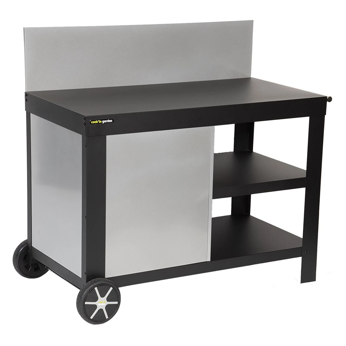 ¿Necesita un mueble extra para preparar sus comidas a la plancha al aire libre o en el interior? ¡El carrito plancha NOVA es el accesorio que necesitas! Perfecto para mover fácilmente su plancha de gas o eléctrica, tiene 2 ruedas grandes y un asa lateral para llevarla de su jardín a su mesa de comedor. Sus dos bandejas, una baja y la otra intermedia, pueden acomodar tus platos, utensilios de cocina e ingredientes para tener todo a mano. Este carrito plancha tiene una tapa para evitar arrojar salpicaduras a sus invitados durante la preparación. Este carrito plancha negro se convertirá en tu imprescindible rápidamente.