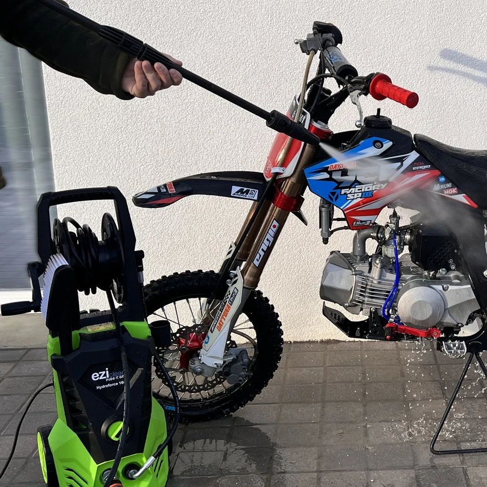Hasta 12 configuraciones posibles y 12 accesorios incluidos. Viene con 2 juegos de sus 3 soluciones de limpieza. Pase de limpiar su terraza, a limpiar las ruedas de su coche, a limpiar sus muebles de exterior en un abrir y cerrar de ojos.