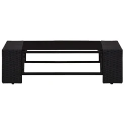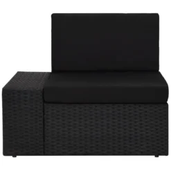 Este juego de muebles de ratán sintético es una combinación perfecta de estilo y funcionalidad. Con esto en el jardín, puedes pasar el rato relajándote y descansando con tu familia y amigos. Gracias al ratán PE resistente a la intemperie, el asiento es fácil de limpiar, resistente y adecuado para usar a diario. El sofá posee una robusta estructura de acero con recubrimiento en polvo, por lo que es muy duradero. Los cojines de respaldo y de asiento extraíbles están bien acolchados para ofrecer gran comodidad al sentarte. La mesa de centro, con un diseño sobrio, puede sostener tus libros, revistas y café para pasar un rato tranquilo y relajante. Además, con un notable diseño modular, todas las piezas pueden colocarse y personalizarse como quieras. Este juego de asientos sin duda será el centro de atención de tu jardín o patio. Nota: Recomendamos cubrir el conjunto en caso de lluvia, nieve y heladas. Color: NegroMaterial: Ratán PE, tela (100% poliéster, acero con recubrimiento en polvo, vidrio templadoSofá central:Dimensiones: 58,5 x 65,5 x 52 cm (ancho x profundo x altoAnchura del asiento: 58,5 cmProfundidad del asiento: 60,5 cmAltura de asiento: 26 cmDimensiones del cojín de respaldo: 58,5 x 30 x 8 cm (largo x ancho x gruesoDimensiones del cojín del asiento: 58,5 x 60 x 8 cm (largo x ancho x grosorSofá de esquina:Dimensiones: 78,5 x 65,5 x 52 cm (ancho x profundo x altoAnchura del asiento: 58,5 cmProfundidad del asiento: 60,5 cmAltura de asiento: 26 cmAncho del reposabrazos: 20 cmAltura del reposabrazos: 33 cmDimensiones del cojín de respaldo: 58,5 x 30 x 8 cm (largo x ancho x gruesoDimensiones del cojín del asiento: 58,5 x 60,5 x 8 cm (largo x ancho x grosorMesa de centro:Dimensiones: 90 x 50 x 26 cm (largo x ancho x altoGrosor del vidrio: 5 mmRequiere montaje: SíLa entrega incluye::1 x Mesa de centro2 x Sofás centrales1 x Sofá esquinero con reposabrazos izquierdo1 x Sofá esquinero con reposabrazos derecho4 x Cojines de respaldo4 x Cojines de asiento