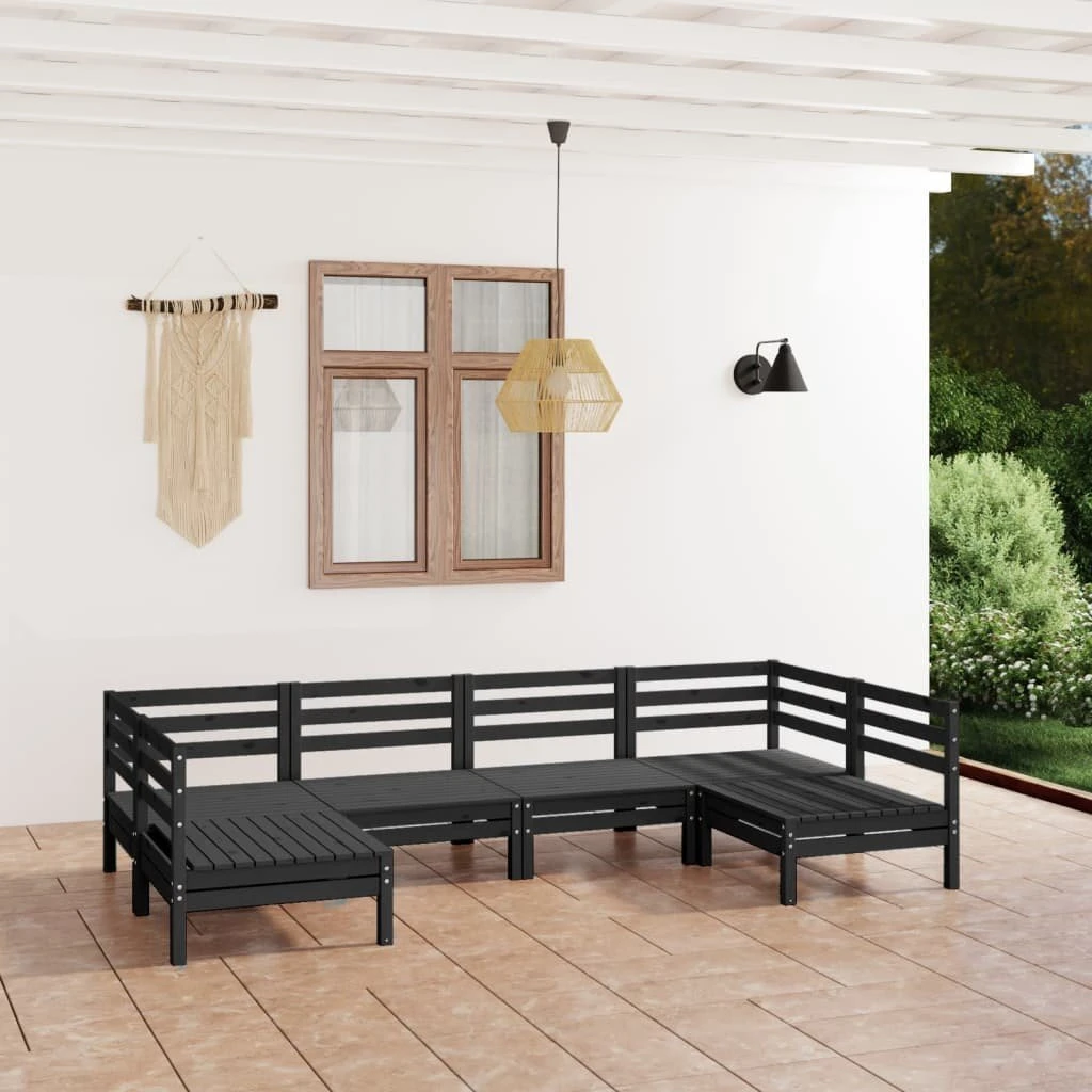 Este juego de muebles para jardín de madera está pensado para ser la opción ideal para relajarte y disfrutar del buen tiempo, echar una siesta o charlar con tu familia o amigos. Con un diseño de palets atemporal, el sofá de madera agregará un toque de encanto rústico a tu patio, jardín o sala de estar. Hecho de madera de pino maciza, este juego de muebles para jardín es muy duradero, resistente a la intemperie y respetuoso con el medio ambiente. Este conjunto de muebles tiene una construcción maciza y requiere poco mantenimiento. Además, el diseño modular también permite colocar el conjunto en cualquier disposición según tu gusto. Nota: Para prolongar la vida útil de los muebles de exterior, te recomendamos que los limpies con regularidad y no los dejes al aire libre sin protección innecesariamente.Limpieza: Usa una solución de jabón suave.Almacenamiento: Si es posible, guarda el producto en un lugar fresco y seco en el interior. Si el producto se almacena al aire libre, protégelo con una funda impermeable. Limpia y seca el exceso de agua o nieve de las superficies planas después de una lluvia o nevada. Permite la ventilación para evitar daños relacionados con la humedad. Color: NegroMaterial: Madera de pino macizaDimensiones del sofá de esquina/medio: 63,5 x 63,5 x 62,5 cm (ancho x profundo x altoRequiere montaje: SíLa entrega incluye:2 x Sofás de esquina4 x Sofás centrales