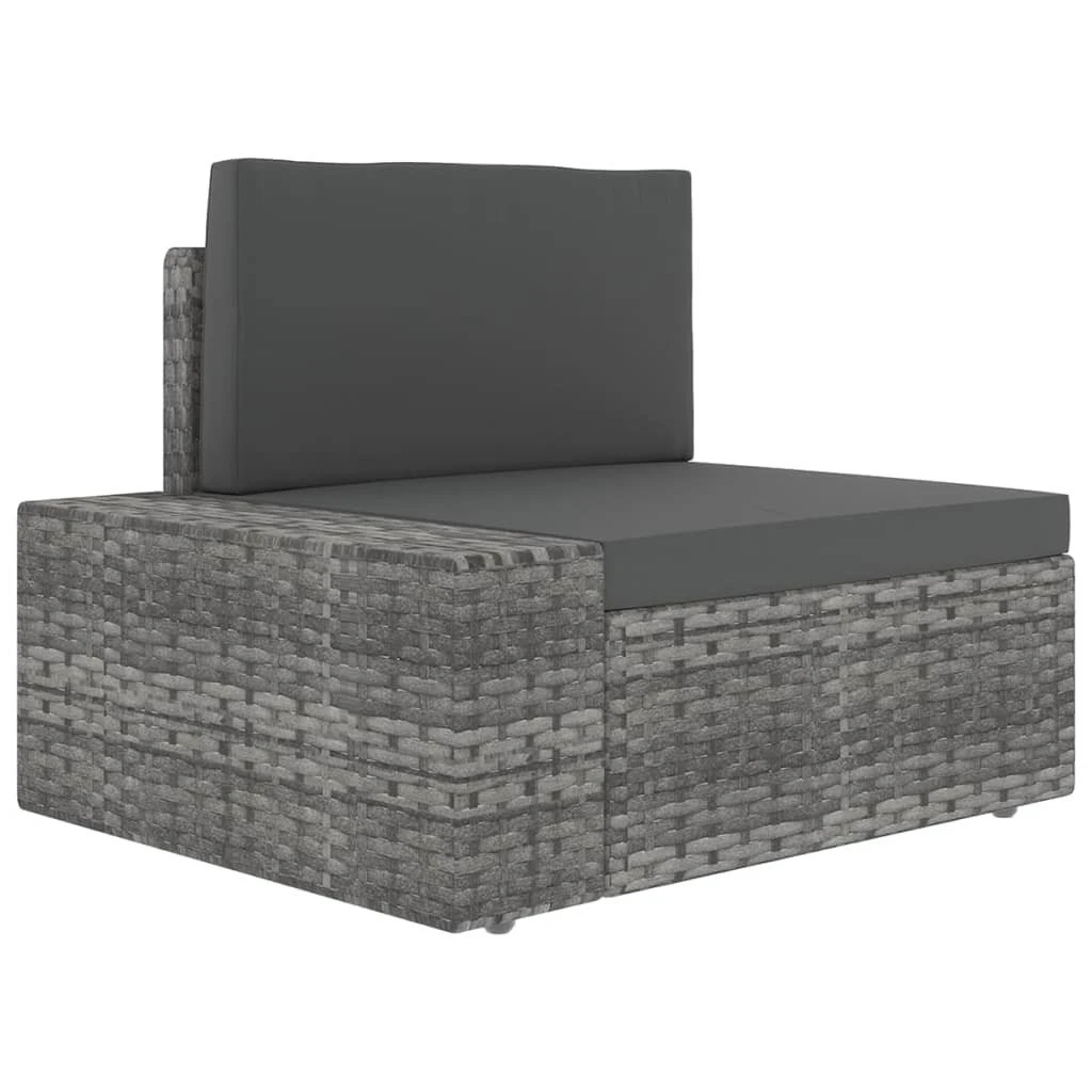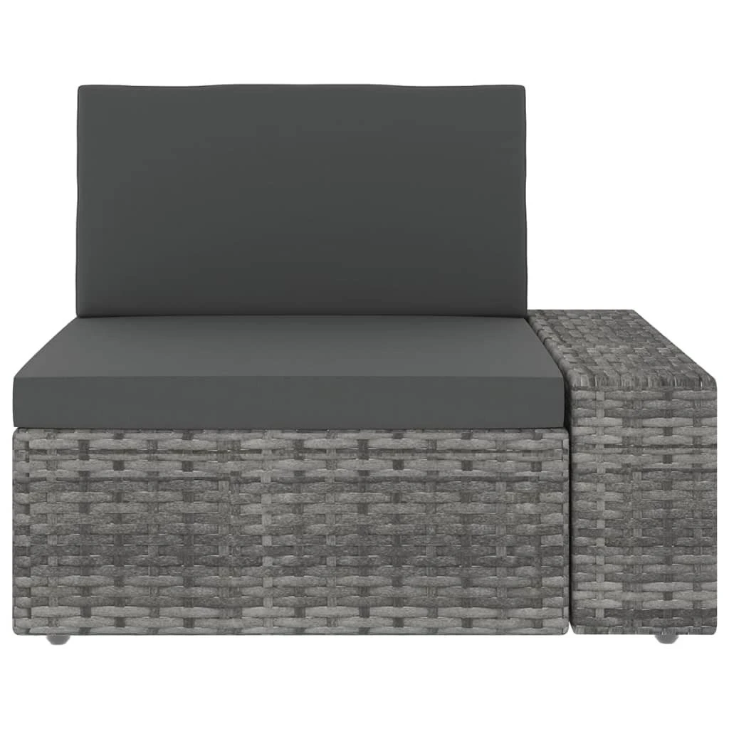 Este juego de salón de jardín combina estilo y funcionalidad y es una opción ideal para relajarte y disfrutar del buen tiempo, echar una siesta o charlar con tu familia o amigos. Gracias al ratán PE resistente a la intemperie, el asiento es fácil de limpiar, duradero y adecuado para el uso diario. El sofá posee una robusta estructura de acero con recubrimiento en polvo, que es muy duradero. La mesa de café con superficie vidrio templado puede sujetar tus libros, revistas y té para disfrutar de un momento relajante. También es ligero y modular, lo que lo hace completamente flexible y fácil de mover para adaptarse a cualquier entorno. Los cojines gruesos y extraíbles son muy cómodos. Puedes combinarlo con otros asientos modulares disponibles en nuestra tienda y ¡crear tus configuraciones personales de sofás de jardín! Nota: Para prolongar la vida útil de los muebles de exterior, te recomendamos que los limpies con regularidad y no los dejes al aire libre sin protección innecesariamente.Limpieza: Usa una solución de jabón suave.Almacenamiento: Si es posible, guarda el producto en un lugar fresco y seco en el interior. Si el producto se almacena al aire libre, protégelo con una funda impermeable. Limpia y seca el exceso de agua o nieve de las superficies planas después de una lluvia o nevada. Permite la ventilación para evitar daños relacionados con la humedad. Color: GrisColor de cojín: Gris antracitaMaterial: Ratán PE, tela (100% poliéster, acero con recubrimiento en polvo, vidrio templadoDimensiones mesa de centro: 90 x 50 x 26 cm (largo x ancho x altoDimensiones del sofá del medio: 58,5 x 65,5 x 52 cm (ancho x fondo x altoDimensiones del sofá de esquina (con reposabrazos izquierdo/derecho: 78,5 x 65,5 x 52 cm (ancho x profundo x altoGrosor del cojín: 8 cmRequiere montaje: SíLa entrega incluye:1 x Mesa de centro3 x Sofás centrales1 x Sofá esquinero con reposabrazos izquierdo1 x Sofá esquinero con reposabrazos derecho5 x Cojines de asiento5 x Cojines de respaldo