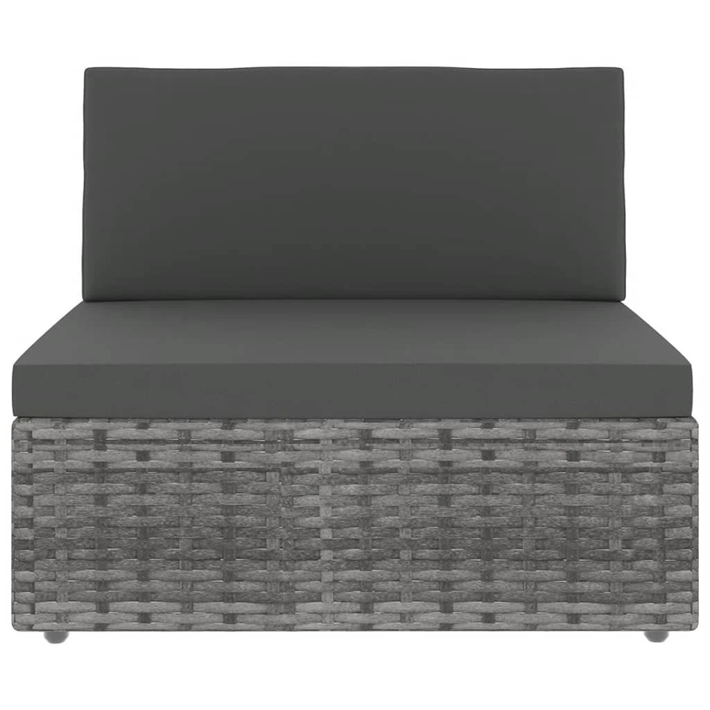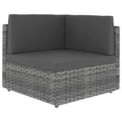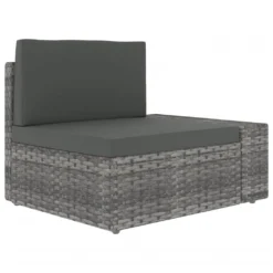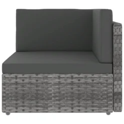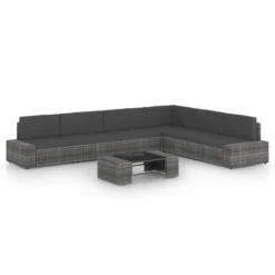 Este juego de salón de jardín combina estilo y funcionalidad y es una opción ideal para relajarte y disfrutar del buen tiempo, echar una siesta o charlar con tu familia o amigos. Gracias al ratán PE resistente a la intemperie, el asiento es fácil de limpiar, duradero y adecuado para el uso diario. El sofá posee una robusta estructura de acero con recubrimiento en polvo, que es muy duradero. La mesa de café con superficie vidrio templado puede sujetar tus libros, revistas y té para disfrutar de un momento relajante. También es ligero y modular, lo que lo hace completamente flexible y fácil de mover para adaptarse a cualquier entorno. Los cojines gruesos y extraíbles son muy cómodos. Puedes combinarlo con otros asientos modulares disponibles en nuestra tienda y ¡crear tus configuraciones personales de sofás de jardín! Nota: Para prolongar la vida útil de los muebles de exterior, te recomendamos que los limpies con regularidad y no los dejes al aire libre sin protección innecesariamente.Limpieza: Usa una solución de jabón suave.Almacenamiento: Si es posible, guarda el producto en un lugar fresco y seco en el interior. Si el producto se almacena al aire libre, protégelo con una funda impermeable. Limpia y seca el exceso de agua o nieve de las superficies planas después de una lluvia o nevada. Permite la ventilación para evitar daños relacionados con la humedad. Color: GrisColor de cojín: Gris antracitaMaterial: Ratán PE, tela (100% poliéster, acero con recubrimiento en polvo, vidrio templadoDimensiones mesa de centro: 90 x 50 x 26 cm (largo x ancho x altoDimensiones del sofá del medio: 58,5 x 65,5 x 52 cm (ancho x fondo x altoDimensiones del sofá de la esquina: 65,5 x 65,5 x 52 cm (ancho x fondo x altoDimensiones del sofá de esquina (con reposabrazos izquierdo/derecho: 78,5 x 65,5 x 52 cm (ancho x profundo x altoGrosor del cojín: 8 cmRequiere montaje: SíLa entrega incluye:1 x Mesa de centro3 x Sofás centrales1 x Sofá de esquina1 x Sofá esquinero con reposabrazos izquierdo1 x Sofá esquinero con reposabrazos derecho6 x Cojines de asiento7 x Cojines de respaldo