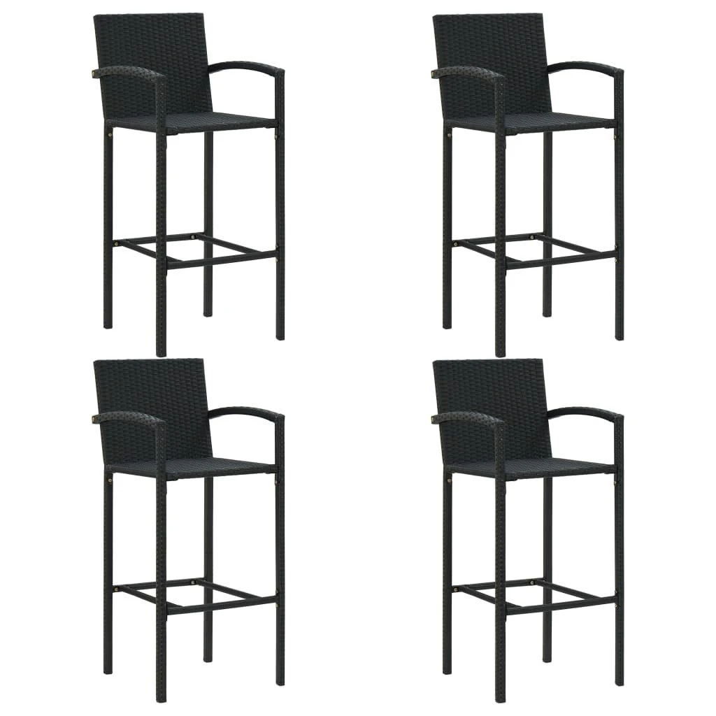 Este elegante juego de bar en el jardín te proporciona un momento agradable y cómodo con tu familia y amigos. La mesa de bar tiene una estructura de acero con recubrimiento en polvo, por lo que es estable y robusta. La superficie es ideal para colocar bebidas, comida o algunos elementos decorativos. Los taburetes tienen una construcción fuerte de estructura de acero, están hechos de ratán PE resistente a la intemperie, garantizan la estabilidad y son fáciles de mover. El reposapiés también aporta un plus de comodidad al taburete. Color: NegroMaterial: Ratán PE, acero con recubrimiento en polvoDimensiones de la mesa: 100 x 60,5 x 110,5 cm (largo x ancho x altoDimensiones de la silla: 52 x 56 x 118 cm (largo x ancho x altoLa entrega incluye:1 x Mesa de bar4 x Taburetes de bar