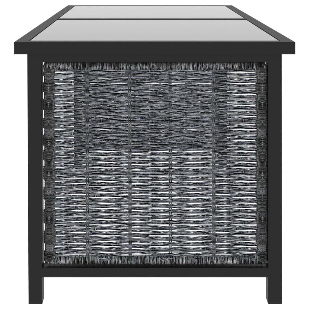 Disfruta de tu tiempo libre con nuestro elegante set de salón de poliratán. Este sofá viene con un diseño modular para múltiples opciones de reconfiguración. Se adapta perfectamente a tu terraza, jardín o patio. El conjunto de sofá de jardín está hecho de ratán sintético resistente a la intemperie. Es fácil de limpiar, duradero y adecuado para el uso diario. La mesa de comedor está hecha de vidrio templado, por lo que es fuerte. La estructura de aluminio con recubrimiento en polvo hace que el conjunto sea muy resistente. Gracias a la construcción ligera, el conjunto de muebles de patio es fácil de mover. Puedes combinarlos libremente como desees. Además, los cojines de asiento acolchados y las almohadas traseras proporcionan la máxima comodidad. Nota: Se recomienda cubrir el set en caso de lluvia, nieve y heladas. Color: Gris antracita, negroColor del asiento: Gris oscuroMaterial: Ratán sintético, aluminio, tela (100% poliéster, vidrio templadoDimensiones generales: 264 x 200 x 64 cm (ancho x profundo x altoDimensiones del sofá de esquina: 68 x 68 x 64 cm (ancho x profundo x altoDimensiones del sofá central: 64 x 68 x 64 cm (ancho x profundo x altoDimensiones de la mesa: 120 x 60 x 66 cm (largo x ancho x altoDimensiones del reposapiés: 40 x 40 x 40 cm (ancho x profundo x altoAltura del asiento: 32 cmGrosor del cojín: 8 cmGrosor de almohadas: 12 cmRequiere montaje: SíLa entrega incluye:3 x Sofás de esquina3 x Sofás centrales1 x Mesa de comedor2 x Taburetes8 x Cojines de asiento6 x Almohada de espalda grande (forma de almohada lumbar1 x Cojines de respaldo pequeños (forma de almohada lumbar