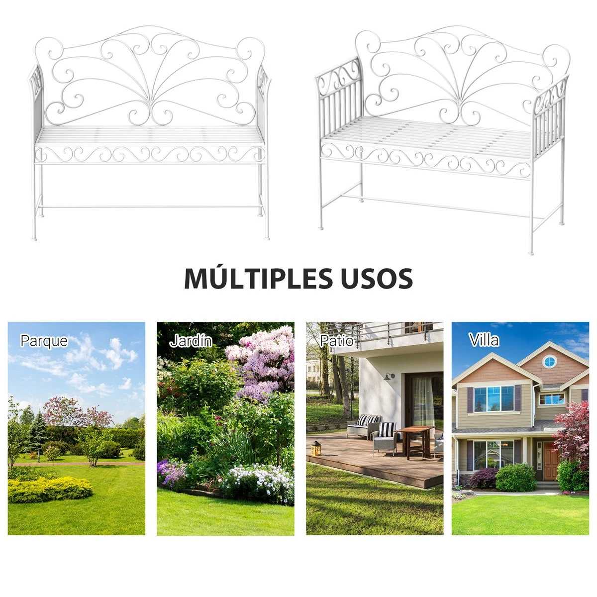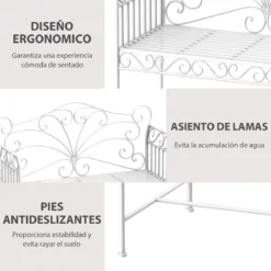 Outsunny Banco De Jardín De 2 Plazas 113,5x50x93,5 Cm Banco De Terraza De Metal Con Respaldo Decorativo Y Reposabrazos Vintage Para Exterior Carga 200 Kg Crema