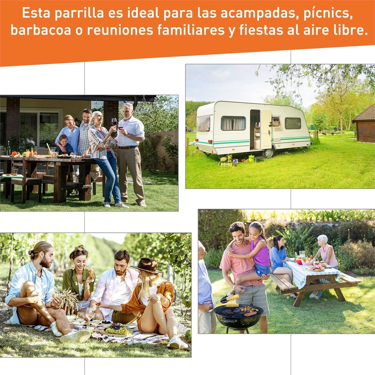 ¿Estás cansado de llevar tu voluminosa barbacoa de carbón a tus acampadas y actividades al aire libre? ¡Esta parrilla portátil de Outsunny es la solución perfecta! Gracias a su tamaño compacto podrás llevarla sin problemas en el maletero de tu coche y a donde quieras. Cuenta con patas para colocar encima de cualquier mesa o superficie plana, dos asas laterales para mover fácilmente, y una tapa con cierre de seguridad y termómetro incorporado para poder controlar la temperatura en todo momento.