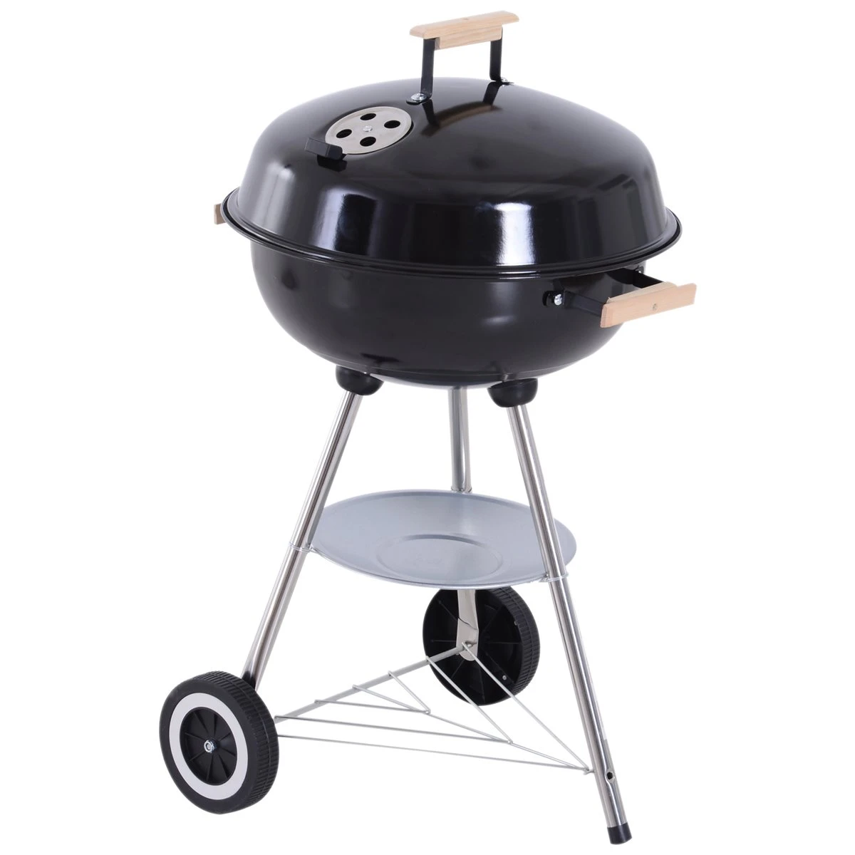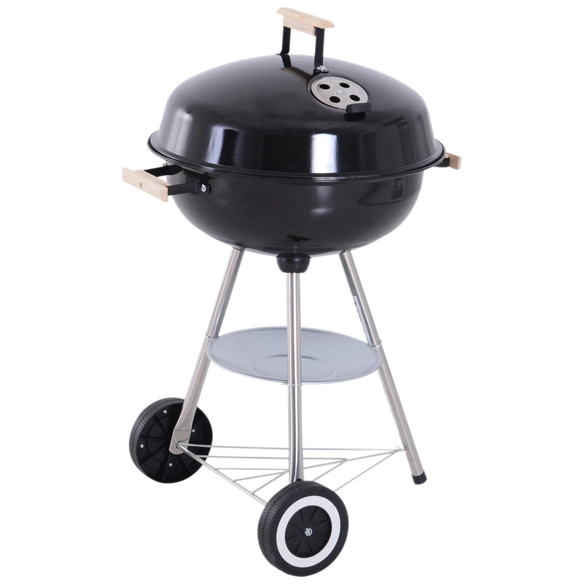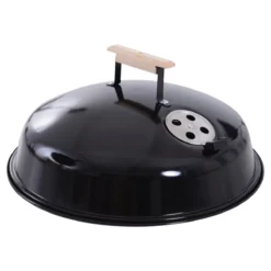 - – ESTRUCTURA DE ALTA CALIDAD: Estructura de metal esmaltada en porcelana. La cazuela de cocción esta revestida en porcelana para poder resistir temperaturas más elevadas. Las patas de acero inoxidable ofrecen una gran estabilidad. – REJILLA DE VENTILACIÓN: La tapa cuenta con una rejilla de ventilación para controlar la temperatura. Así no necesitará levantar la tapa para bajar un poco la temperatura. El asa de la tapa es de madera reforzada para que la puedas abrir y cerrar con comodidad. – ESMALTADO EN PORCELANA: El esmaltado de porcelana ayuda a la barbacoa a mantener la temperatura. Además el acabado de porcelana evita que se oxide, agriete o descame. – FÁCIL DE LIMPIAR: La cazuela incorpora una rejilla en la parte inferior que puedes abrir o cerrar con facilidad. Cuando limpies la parrilla, solo tienes que abrir la rejilla y la ceniza caerá en el colector de ceniza que hay justo debajo, por lo que te será muy fácil de limpiar. – RUEDAS Y BANDEJA: Incorpora dos ruedas para poderla mover con facilidad. Además incorpora una bandeja en la parte inferior para guardar utensilios necesarios para cocinar.