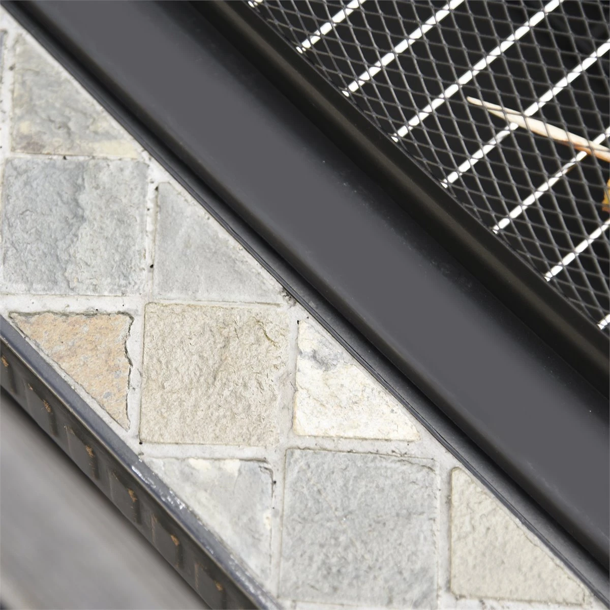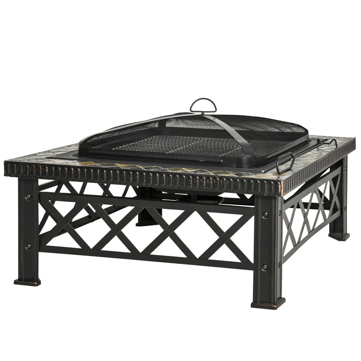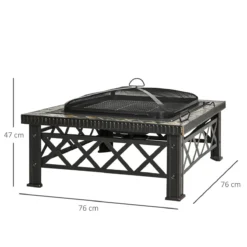 - – BRASERO PARA USO EXTERIOR: Brasero metálico de forma cuadrada con elegantes paneles decorativos de pizarra sintética alrededor de los bordes. Ideal para crear un ambiente cálido y acogedor en cualquier espacio al aire libre como tu jardín, terraza o patio – MULTIFUNCIONAL: Aunque su principal función sea la de brasero a modo de fuente para calentarse, también puede usarse como barbacoa (incluye una parrilla o como cubo de hielo para enfriar bebidas – ESTABLE Y RESISTENTE: Brasero con estructura de metal resistente a altas temperaturas, con patas robustas y laterales reforzados con marco en forma de X. El cuenco del fuego admite carbón y madera – TAPA DE SEGURIDAD Y ATIZADOR: Este brasero cuenta con una tapa de malla para evitar que salten brasas, chispas, cenizas… mientras el atizador incluido te permite avivar el fuego, mover la leña y quitar la tapa con seguridad – MEDIDAS TOTALES: 76x76x47 cm (LxANxAL; Medidas del cuenco de fuego: 60,5×60,5 cm; Medidas de la tapa: 53x53x10 cm (LxANxAL