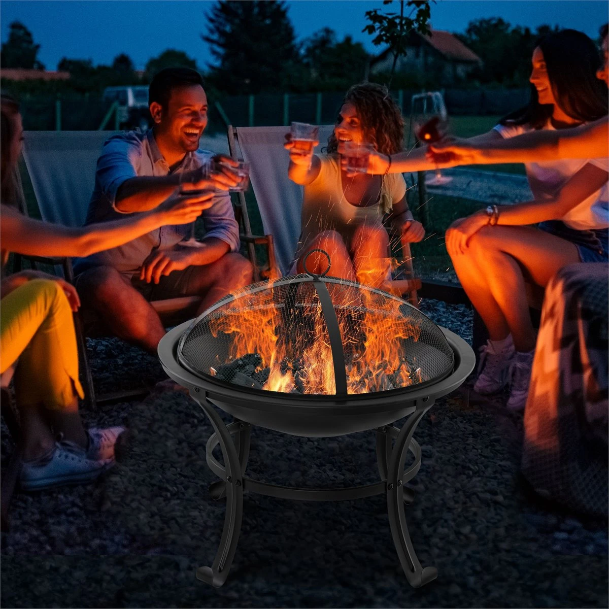 - – BRASERO EXTERIOR: Ideal para calentar y crear un ambiente cálido y acogedor en cualquier espacio al aire libre como tu jardín, terraza o patio. Para relajarse al lado del fuego mientras disfrutas de la compañía de tus familiares o amigos – PORTÁTIL Y VERSÁTIL: Este cuenco para hogueras es ideal para llevar a cualquier espacio exterior donde esté permitido hacer fuego y disfrutar de una inolvidable velada en torno al fuego. El tamaño de la boca del tazón permite quemar madera, hojas secas y otros materiales – MÁXIMA SEGURIDAD: Esta fogata de jardín viene con una tapa de malla para evitar que salten brasas y chispas, y un atizador para avivar el fuego, mover la leña o quitar la tapa de forma segura sin riesgo a quemaduras – TERMORRESISTENTE Y ESTABLE: Hecho completamente de metal, el pozo de fuego está preparado para soportar altas temperaturas de hasta 600 ℃. Incluye patas de soporte para mayor estabilidad. Instalarlo sobre el suelo o base plana y firme – MEDIDAS TOTALES: Ø56×50 cm (DxAL. Medida de la tapa: Ø48,5 cm. NOTA: No utilizar este brasero en espacios cerrados como en casa, caravana, barco o bajo tiendas de campaña para evitar riesgo de intoxicación por monóxido de carbono