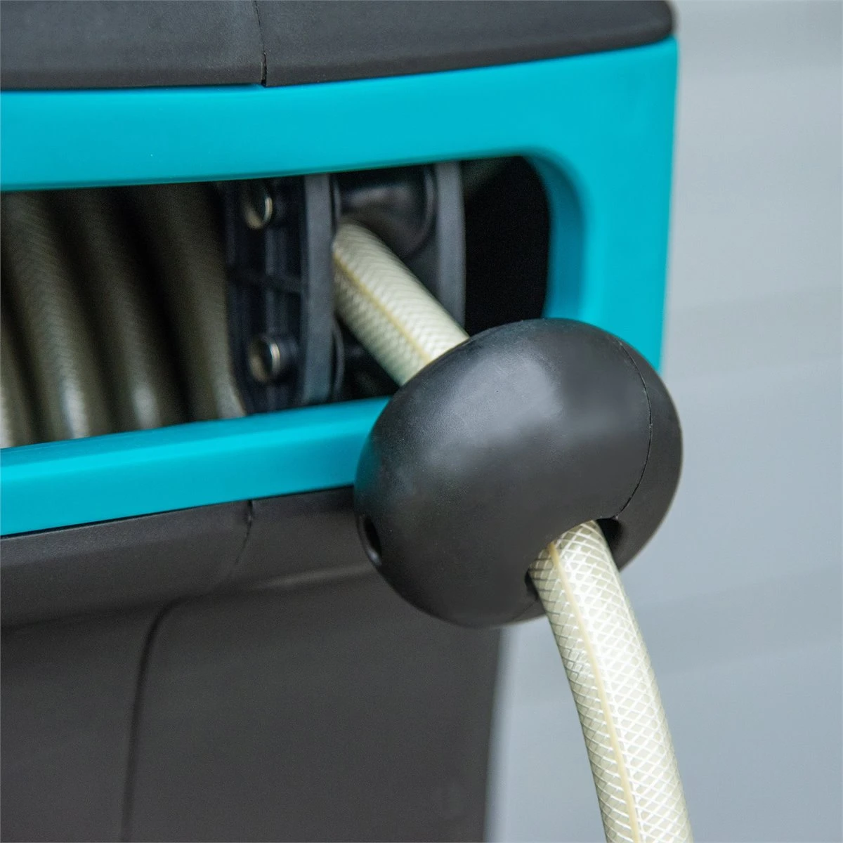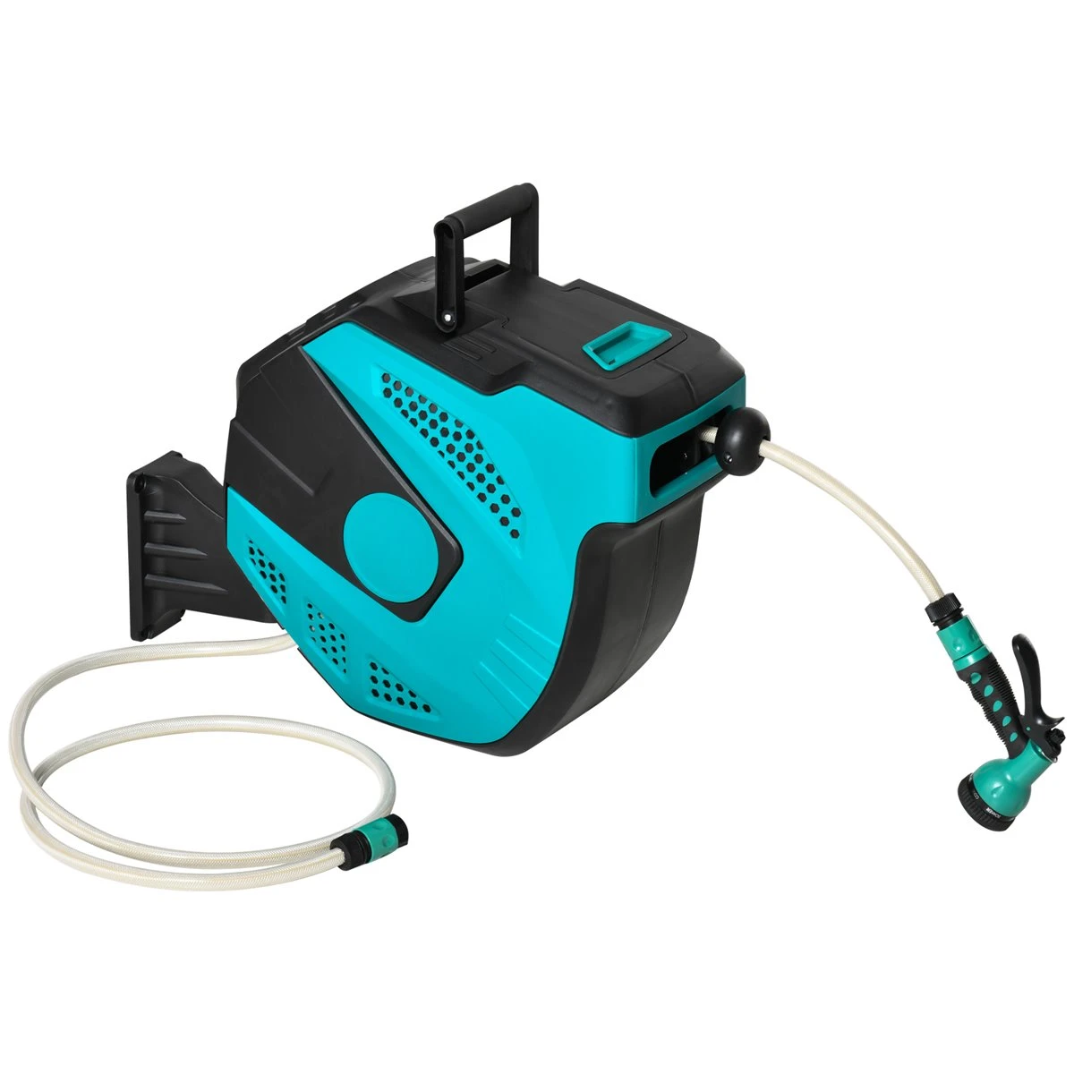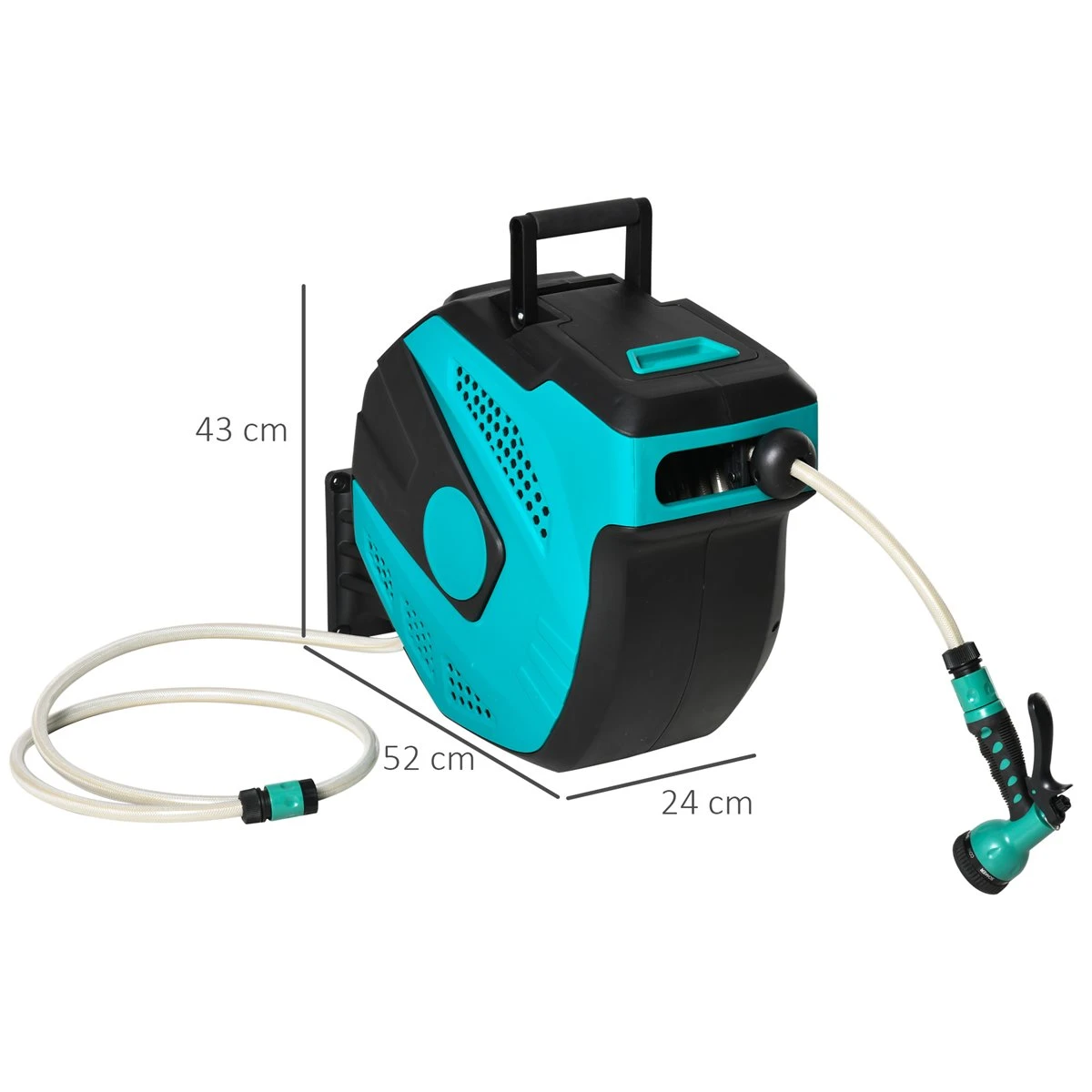 Outsunny Carrete De Manguera De Jardín 20M+1,95M Manguera De Riego Montado En Pared Enrollador Automático Con 7 Modos De Pulverización 180° Giratorio 52x43x24 Cm Negro Y Verde