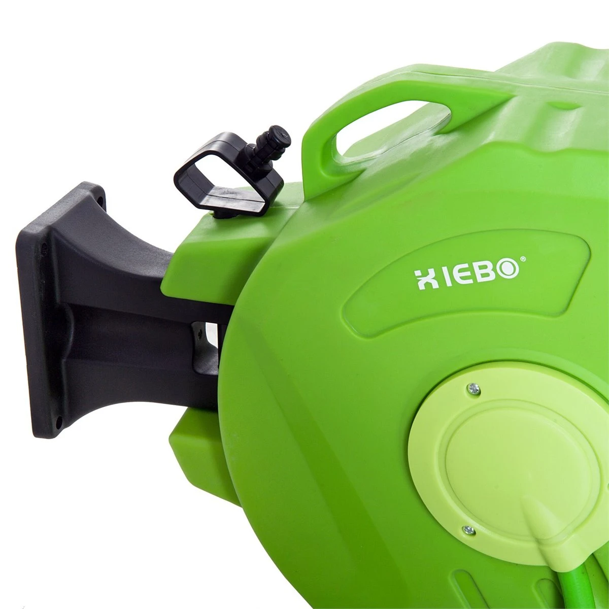 Outsunny Carrete Para Manguera 15M+1,5M Soporte Mural Portamanguera Roll-up Automático Giratorio 180° Con Pistola De Pulverización Base De Pared Conector De Manguera Para Jardín Terraza