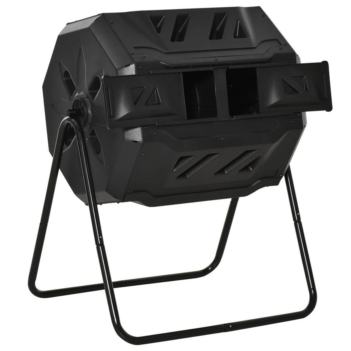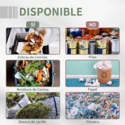 Si apuestas por un planeta más sostenible y te gusta tener plantas o tus propios cultivos, seguro que te interesará este compostador de Outsunny. Hecho de metal y plástico PP, es un aparato de compostaje de tambor giratorio resistente, eficaz y fácil de usar. Para que puedas hacer compost con los restos de comida y residuos de la cocina y los desechos del jardín. Proporciónale a tus plantas el abono rico en nutrientes y reduce la materia orgánica que iría a parar a los vertederos. Características – Diseñado con 2 cámaras, es la forma más eficiente de producir compostaje de alta calidad – El diseño de volteo de 360° le permite tener las manos libres y no mezclar la pila de compost con las manos – El excelente sistema de ventilación acelera el proceso de compostaje – Estructura de acero y plástico PP, resistente y duradera – Incluye unos guates para proteger tus manos de cortes, uñas rotas y suciedad – Requiere montaje Especificaciones – Color: negro – Material: acero, PP – Medidas totales: 71x64x96 cm (LxANxAL – Medidas del cubo: Ø60×65 cm – Altura sobre el suelo: 37 cm – Medidas de la puerta: 22,5×13,5 cm – Capacidad: 160L – Referencia: 845-490