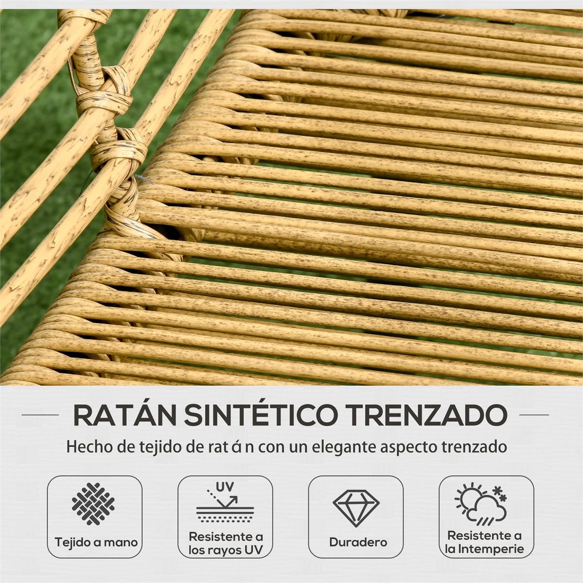 - – CONJUNTO DE MUEBLES DE RATÁN: Conjunto de muebles de jardín compuesto por 1 sofá de dos plazas, 2 sillones individuales y 1 mesa de centro. Ideal para descansar y relajarse al aire libre con amigos o familiares – MESA DE CENTRO ELEGANTE: Este conjunto cuenta con una bonita y funcional mesa de centro. Con encimera de cristal, bonita, resistente y fácil de limpiar y, pies ajustables para que no tambalee si el suelo presenta pequeñas irregularidades – MÁXIMA COMODIDAD: El sofá y los sillones cuentan con cómodos apoyabrazos. Los cojines incluidos para la zona de asiento y respaldo garantizan un descanso óptimo. Los cojines de los respaldos no son desenfundables, pero los de los asientos tienen fundas extraíbles y se pueden lavar fácilmente – GRAN RESISTENCIA: Con estructura de acero con recubrimiento en polvo para mayor resistencia a la intemperie y a la corrosión, este conjunto de muebles tiene una gran capacidad de carga. Envuelto de ratán sintético, lo que le ofrece un aspecto más natural, actual y llamativo – MEDIDAS TOTALES: Medidas del sofá doble: 131x63x76 cm (LxANxAL. Medidas del sillón individual: 63x63x76 cm (LxANxAL. Medidas de la mesa de centro: 80x50x34 cm (LxANxAL. Peso máximo soportado: 240 kg (sofá de dos plazas, 120 kg (sillón individual, 30 kg (mesa de centro. Se requiere montaje