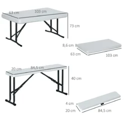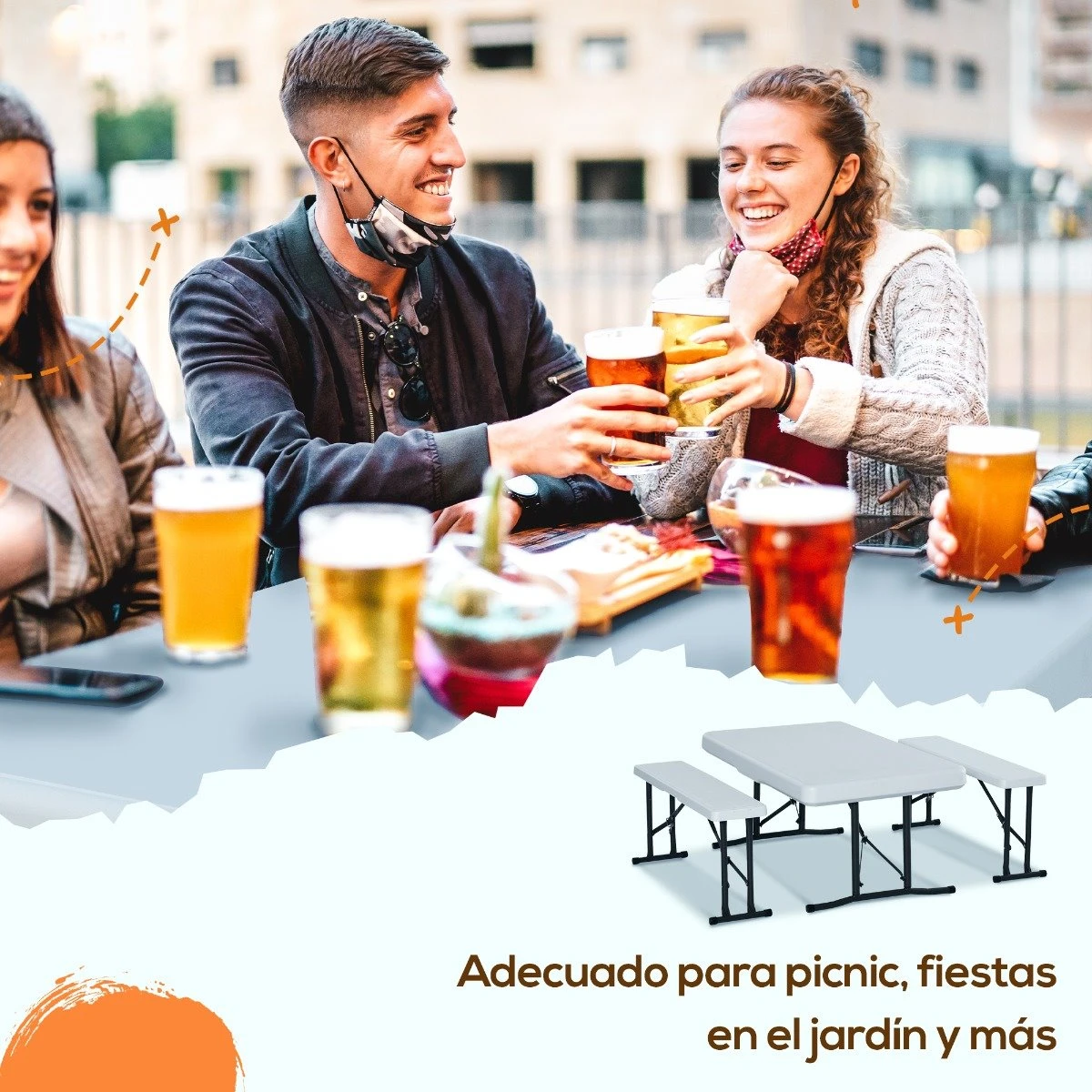 Outsunny Conjunto Mesa Y 2 Bancos Plegables De Jardín Muebles Para Camping Picnic Mesa De 103x63x76 Cm Y Asiento De 84,5x20x40 Cm Blanco